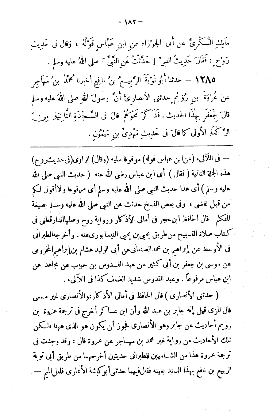 : أَيْ هَذَا حَدِيث النَّبِيّ صَلَّى اللَّه عَلَيْهِ وَسَلَّمَ أَيْ مَرْفُوعًا وَلَا أَقُول لَكُمْ مِنْ قِبَل نَفْسِي ، وَفِي بَعْض النُّسَخ حَدَّثْت عَنْ النَّبِيّ صَلَّى اللَّه عَلَيْهِ وَسَلَّمَ بِصِيغَةِ الْمُتَكَلِّم قَالَ الْحَافِظ اِبْن حَجَر فِي أَمَالِي الْأَذْكَار وَرِوَايَة رَوْح وَصَلَهَا الدَّارَقُطْنِيُّ فِي كِتَاب صَلَاة التَّسْبِيح مِنْ طَرِيق يَحْيَى بْن يَحْيَى النَّيْسَابُورِيّ عَنْهُ . وَأَخْرَجَهُ الطَّبَرَانِيّ فِي الْأَوْسَط عَنْ إِبْرَاهِيم بْن مُحَمَّد الصَّنْعَانِيّ عَنْ أَبِي الْوَلِيد هِشَام بْن إِبْرَاهِيم الْمَخْزُومِيّ عَنْ مُوسَى بْن جَعْفَر بْن أَبِي كَثِير عَنْ عَبْد الْقُدُّوس بْن حَبِيب عَنْ مُجَاهِد عَنْ اِبْن عَبَّاس مَرْفُوعًا . وَعَبْد الْقُدُّوس شَدِيد الضَّعْف كَذَا فِي اللَّآلِئ .