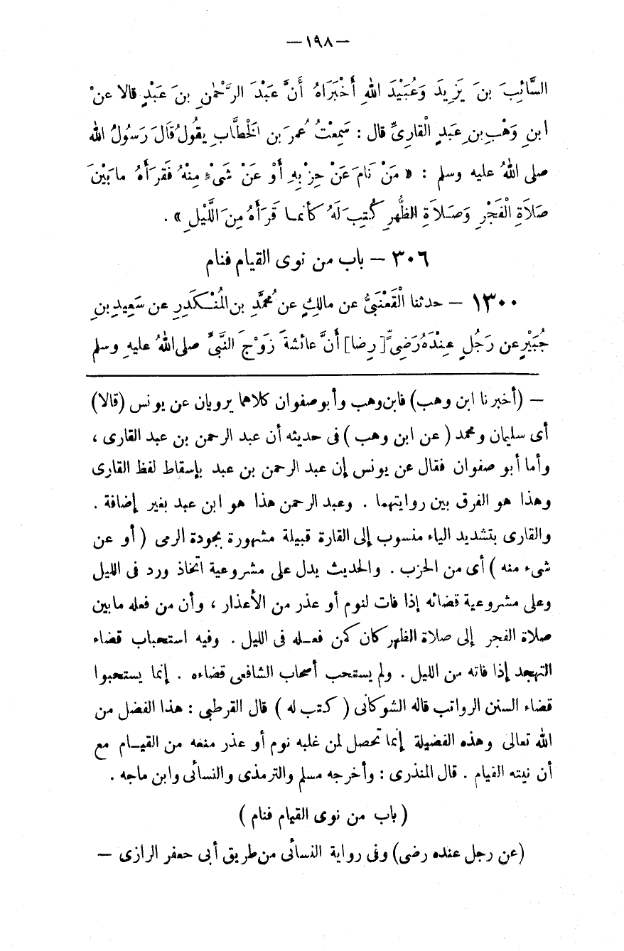 : أَيْ مِنْ الْحِزْب . وَالْحَدِيث يَدُلّ عَلَى مَشْرُوعِيَّة اِتِّخَاذ وِرْد فِي اللَّيْل وَعَلَى مَشْرُوعِيَّة قَضَائِهِ إِذَا فَاتَ لِنَوْمٍ أَوْ عُذْر مِنْ الْأَعْذَار ، وَأَنَّ مَنْ فَعَلَهُ مَا بَيْن صَلَاة الْفَجْر إِلَى صَلَاة الظُّهْر كَانَ كَمَنْ فَعَلَهُ فِي اللَّيْل . وَفِي اِسْتِحْبَاب قَضَاء التَّهَجُّد إِذَا فَاتَهُ مِنْ اللَّيْل . وَلَمْ يَسْتَحِبّ أَصْحَاب الشَّافِعِيّ قَضَاءَهُ . إِنَّمَا يَسْتَحِبُّون قَضَاء السُّنَن الرَّوَاتِب قَالَهُ الشَّوْكَانِيُّ