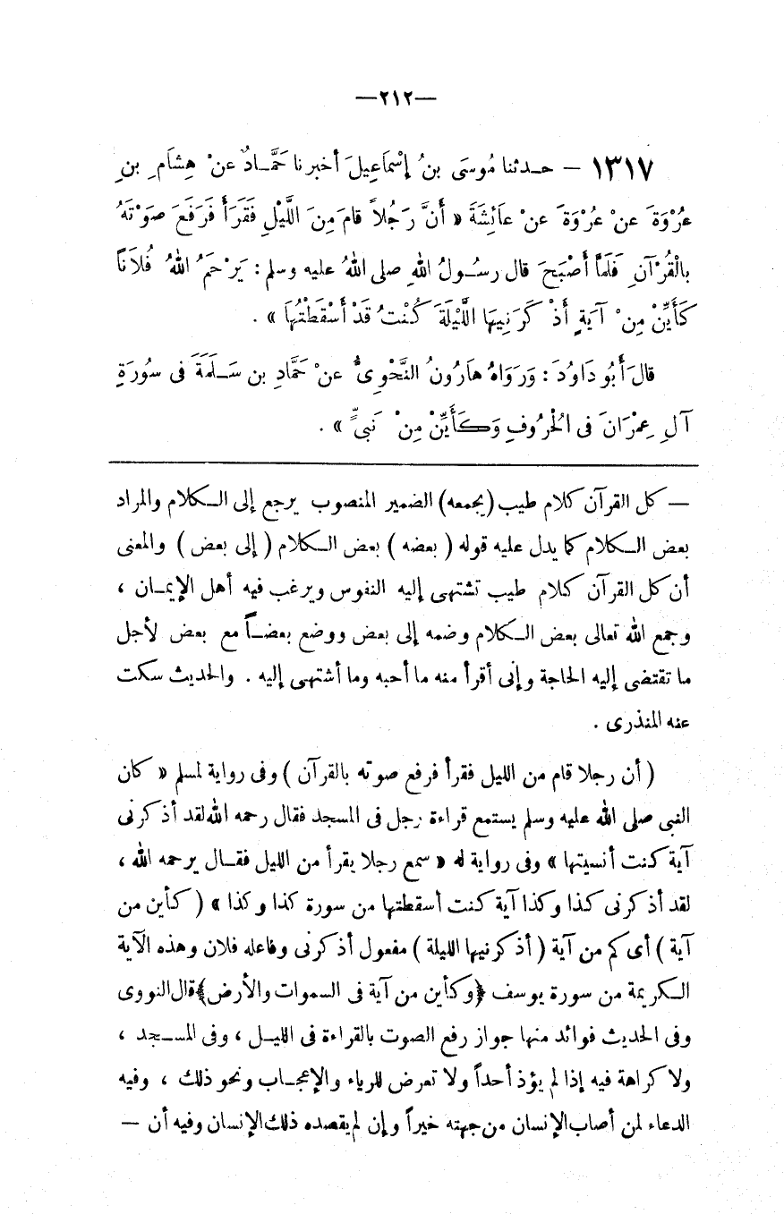 ( أَنَّ رَجُلًا قَامَ مِنْ اللَّيْل فَقَرَأَ فَرَفَعَ صَوْته بِالْقُرْآنِ )