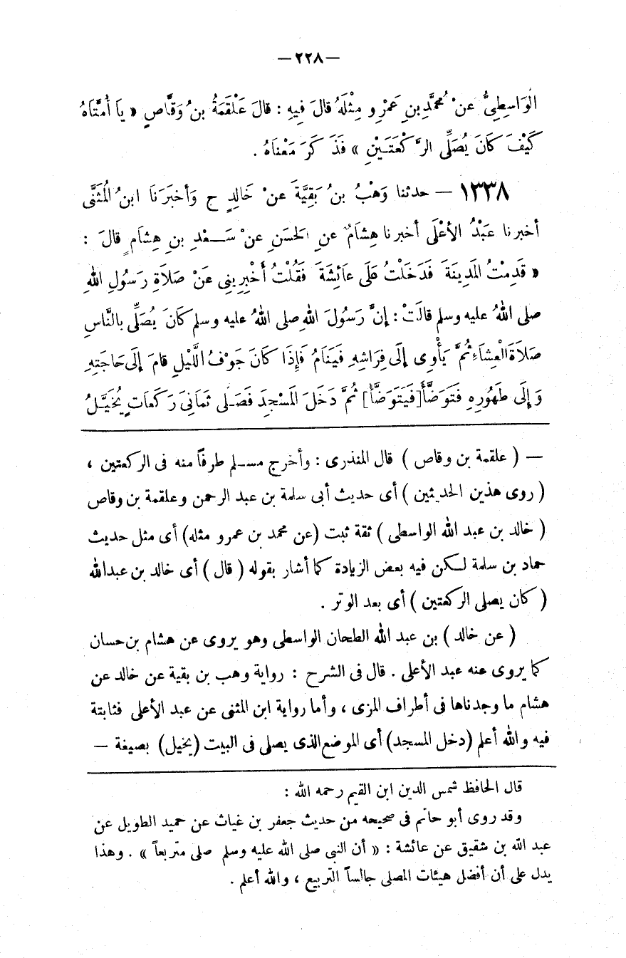 قال الحافظ شمس الدين بن القيم رحمه الله وقد روى أبو حاتم في صحيحه من حديث جعفر بن غياث عن حميد الطويل عن عبد الله بن شقيق عن عائشة أن النبي صلى الله عليه و سلم صلى متربعا