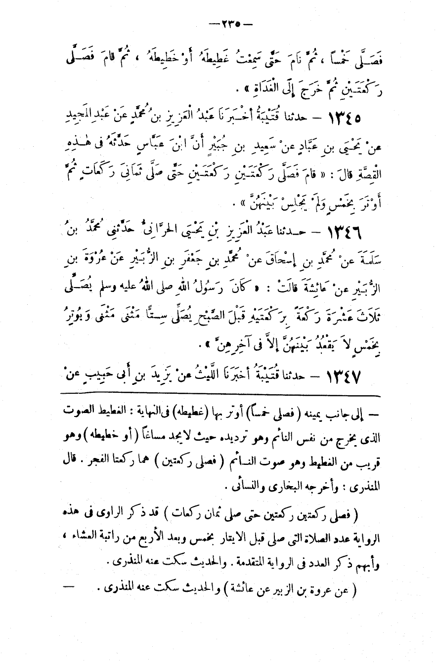 : قَدْ ذَكَرَ الرَّاوِي فِي هَذِهِ الرِّوَايَة عَدَد الصَّلَاة الَّتِي صَلَّى قَبْل الْإِيتَار بِخَمْسٍ وَبَعْد الْأَرْبَع مِنْ رَاتِبَة الْعِشَاء ، وَأَبْهَمَ ذِكْرَ الْعَدَد فِي الرِّوَايَة الْمُتَقَدِّمَة . وَالْحَدِيث سَكَتَ عَنْهُ الْمُنْذِرِيُّ .