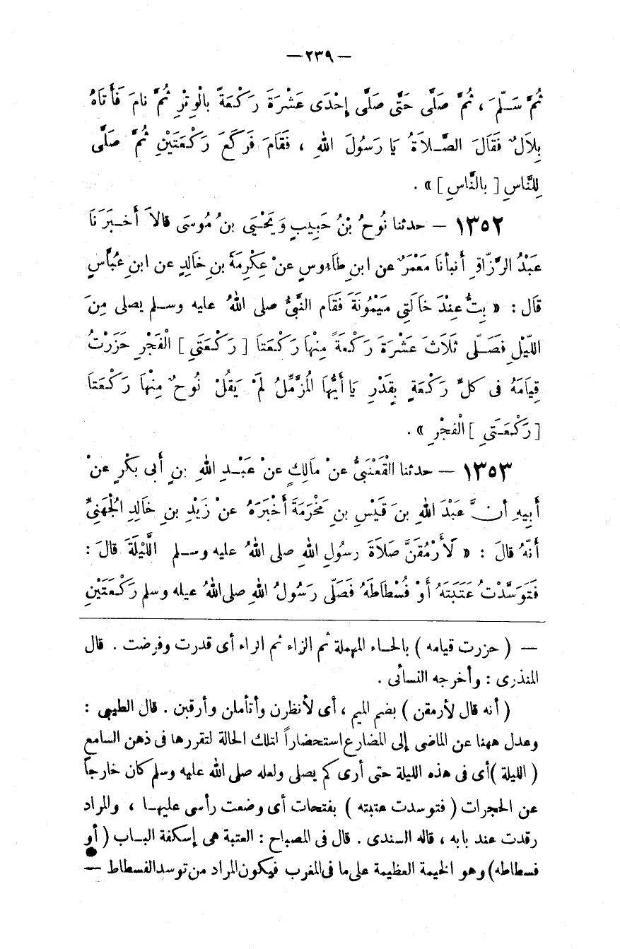 : أَيْ فِي هَذِهِ اللَّيْلَة حَتَّى أَرَى كَمْ يُصَلِّي وَلَعَلَّهُ صَلَّى اللَّه عَلَيْهِ وَسَلَّمَ كَانَ خَارِجًا عَنْ الْحُجُرَات