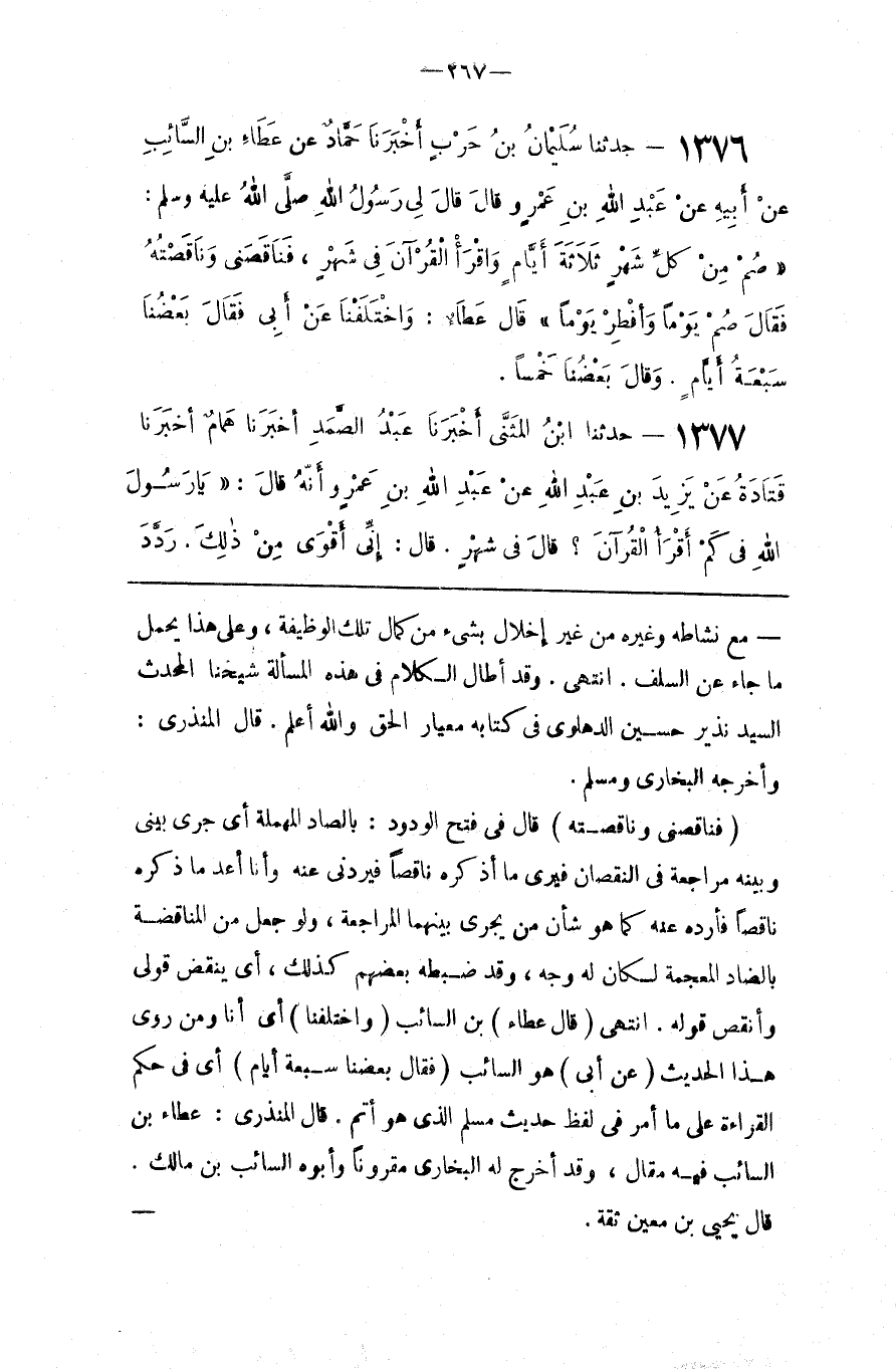 مَعَ نَشَاطِهِ وَغَيْره مِنْ غَيْر إِخْلَال بِشَيْءٍ مِنْ كَمَالِ تِلْكَ الْوَظِيفَة ، وَعَلَى هَذَا يُحْمَلُ مَا جَاءَ عَنْ السَّلَفِ . اِنْتَهَى . وَقَدْ أَطَالَ الْكَلَام فِي هَذِهِ الْمَسْأَلَة شَيْخنَا الْمُحَدِّث السَّيِّد نَذِير حُسَيْن الدَّهْلَوِيُّ فِي كِتَابه مِعْيَار الْحَقِّ وَاَللَّهُ أَعْلَمُ