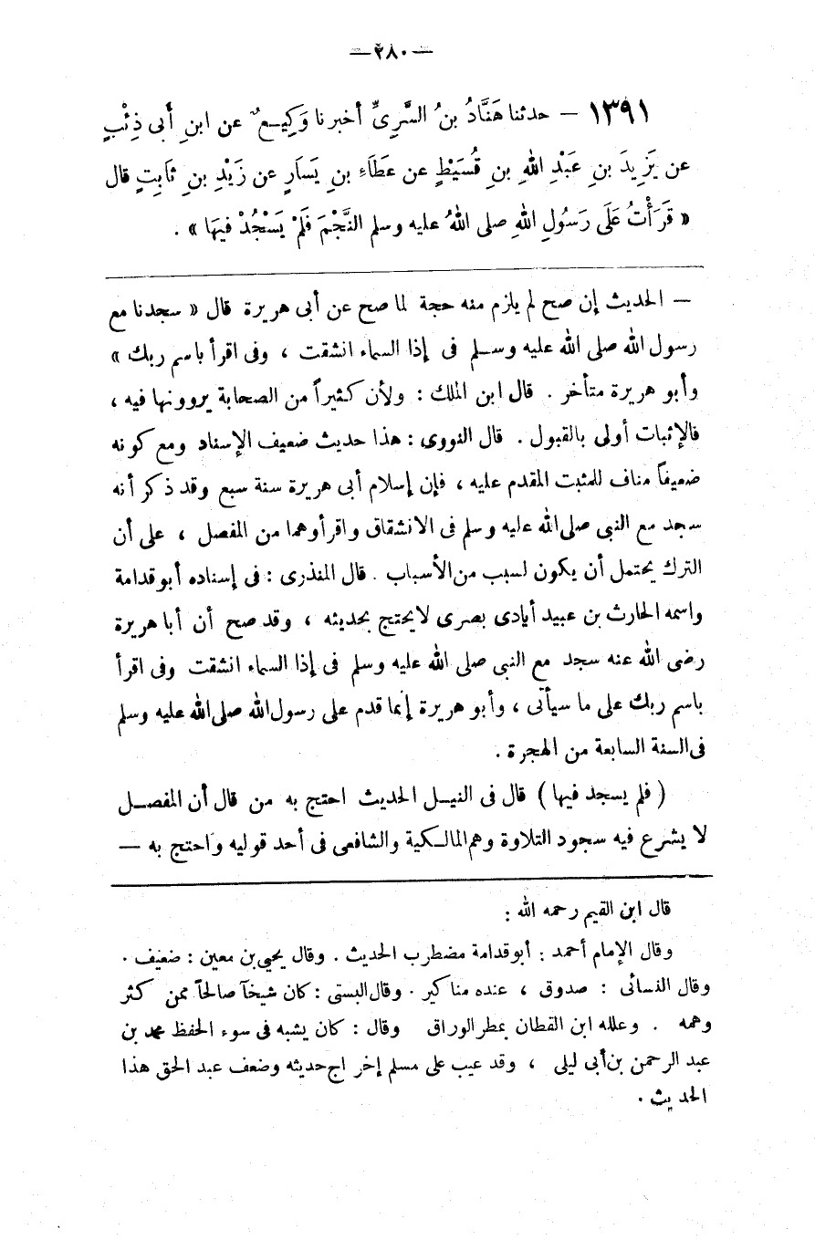 وعلله ابن القطان بمطر الوراق وقال كان يشبه في سوء الحفظ محمد بن عبدالرحمن بن أبي ليلى وقد عيب على مسلم إخراج حديثه وضعف عبدالحق هذا الحديث