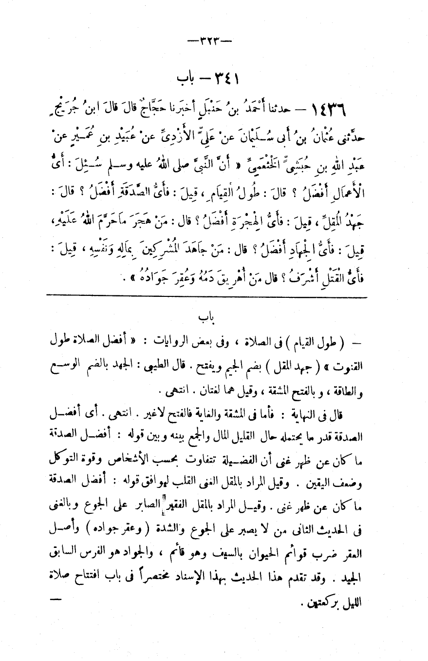 : فِي الصَّلَاة ، وَفِي بَعْض الرِّوَايَات : " أَفْضَل الصَّلَاة طُول الْقُنُوت"