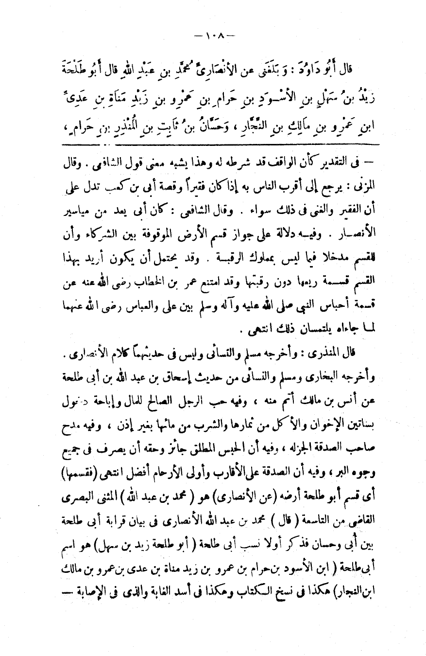 : مُحَمَّد بْن عَبْد اللَّه الْأَنْصَارِيّ فِي بَيَان قَرَابَة أَبِي طَلْحَة بَيْن أَبِي حَسَّان فَذَكَر أَوَّلًا نَسَب أَبِي طَلْحَة