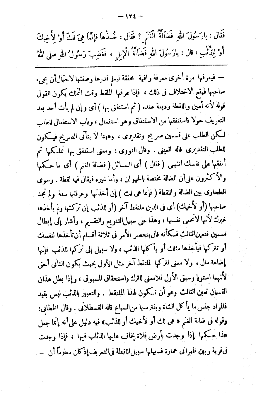 : أَيْ مَا حُكْمهَا وَالْأَكْثَرُونَ عَلَى أَنَّ الضَّالَّة مُخْتَصَّة بِالْحَيَوَانِ ، وَأَمَّا غَيْره فَيُقَال فِيهِ لُقَطَة . وَسَوَّى الطَّحَاوِيُّ بَيْن الضَّالَّة وَاللُّقَطَة