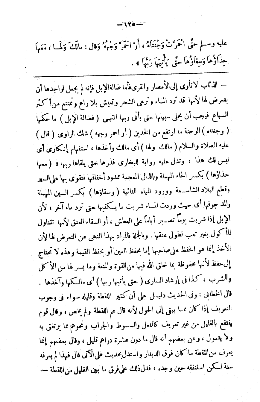 الذِّئَاب لَا تَأْوِي إِلَى الْأَمْصَار وَالْقُرَى فَأَمَّا ضَالَّة الْإِبِل فَإِنَّهُ لَمْ يُجْعَل لِوَاجِدِهَا أَنْ يَتَعَرَّض لَهَا لِأَنَّهَا قَدْ تَرُدّ الْمَاء وَتَرْعَى الشَّجَر وَتَعِيش بِلَا رَاعٍ وَتَمْتَنِع مِنْ أَكْثَر السِّبَاع فَيَجِبُ أَنْ يُخَلِّي سَبِيلهَا حَتَّى يَأْتِي رَبّهَا اِنْتَهَى