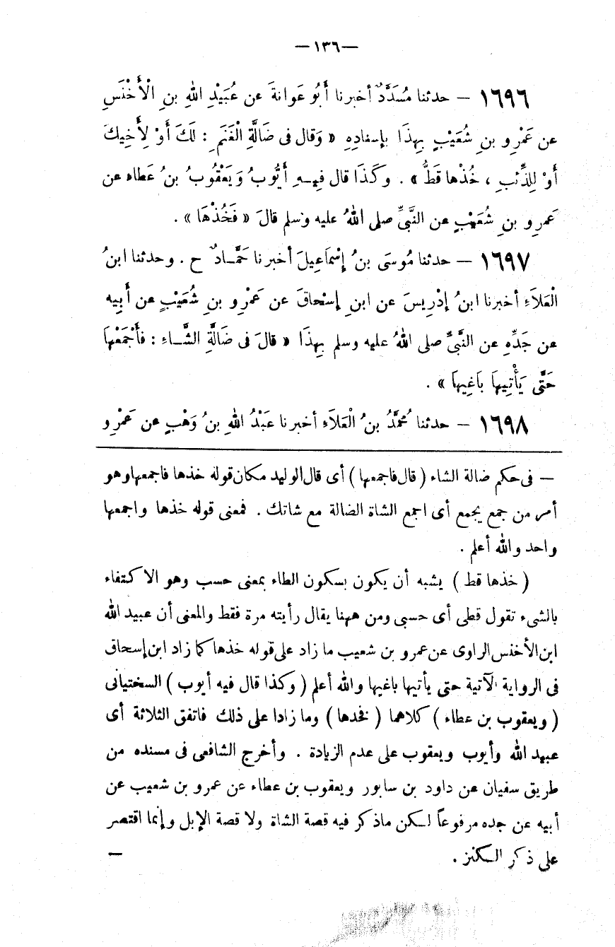 : وَمَا زَادَا عَلَى ذَلِكَ فَاتَّفَقَ الثَّلَاثَة أَيْ عُبَيْد اللَّه وَأَيُّوب وَيَعْقُوب عَلَى عَدَم الزِّيَادَة . وَأَخْرَجَ الشَّافِعِيّ فِي مُسْنَده مِنْ طَرِيق سُفْيَان عَنْ دَاوُدَ بْن سَابُور وَيَعْقُوب بْن عَطَاء عَنْ عَمْرو بْن شُعَيْب عَنْ أَبِيهِ عَنْ جَدّه مَرْفُوعًا لَكِنْ مَا ذَكَرَ فِيهِ قِصَّة الشَّاة وَلَا قِصَّة الْإِبِل وَإِنَّمَا اِقْتَصَرَ عَلَى ذِكْر الْكَنْز .@