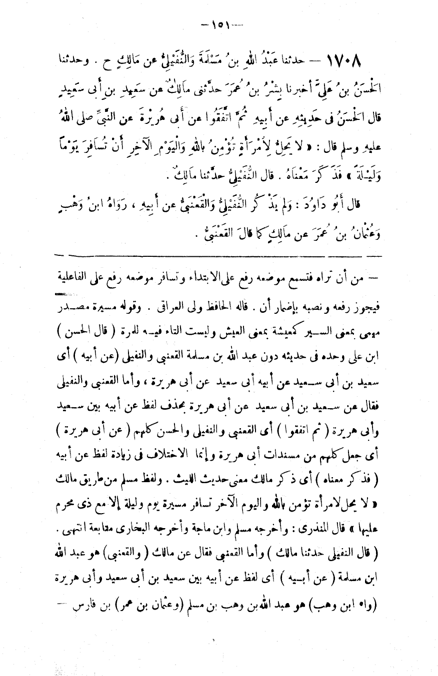 : بْن عَلِيّ وَحْدَهُ فِي حَدِيثه دُون عَبْد اللَّه بْن مَسْلَمَة الْقَعْنَبِيّ وَالنُّفَيْلِيّ