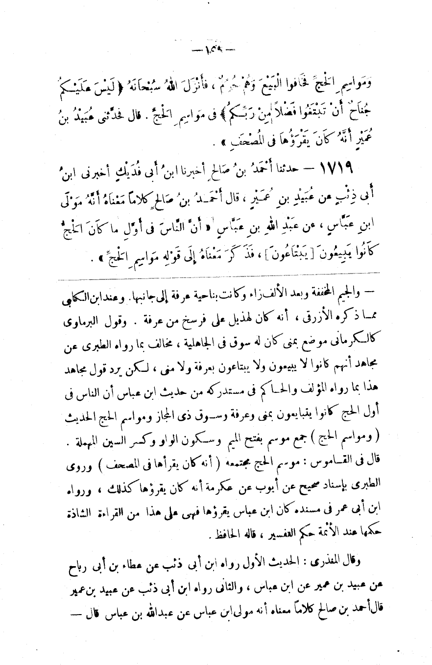 وَقَالَ الْمُنْذِرِيّ : الْحَدِيث الْأَوَّل رَوَاهُ اِبْن أَبِي ذِئْب عَنْ عَطَاء بْن أَبِي رَبَاح عَنْ عُبَيْد بْن عُمَيْر عَنْ اِبْن عَبَّاس ، وَالثَّانِي رَوَاهُ اِبْن أَبِي ذِئْب عَنْ عُبَيْد بْن عُمَيْر قَالَ أَحْمَد بْن صَالِح كَلَامًا مَعْنَاهُ أَنَّهُ مَوْلَى اِبْن عَبَّاس عَنْ عَبْد اللَّه بْن عَبَّاس قَالَ @