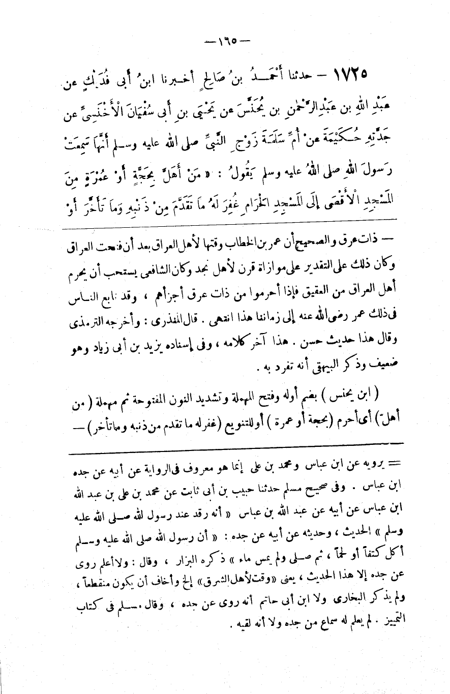 وفي صحيح مسلم حدثنا حبيب بن أبي ثابت عن محمد بن علي بن عبد الله بن عباس عن أبيه عن عبد الله بن عباس أنه رقد عند رسول الله صلى الله عليه و سلم الحديث وحديثه عن أبيه عن جده أن رسول الله صلى الله عليه و سلم أكل كتفا أو لحما ثم