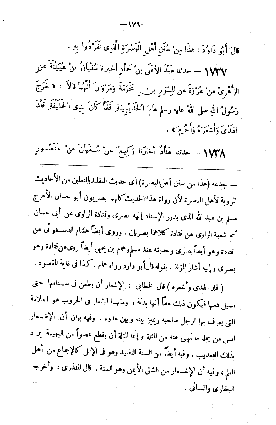 : أَيْ حَدِيث التَّقْلِيد بِالنَّعْلَيْنِ مِنْ الْأَحَادِيث الْمَرْوِيَّة لِأَهْلِ الْبَصْرَة لِأَنَّ رُوَاة هَذَا الْحَدِيث كُلّهمْ بَصْرِيُّونَ أَبُو حَسَّان الْأَعْرَج مُسْلِم بْن عَبْد اللَّه الَّذِي يَدُور الْإِسْنَاد إِلَيْهِ بَصْرِيّ وَقَتَادَة الرَّاوِي عَنْ أَبِي حَسَّان ثُمَّ شُعْبَة الرَّاوِي عَنْ قَتَادَة كِلَاهُمَا بَصْرِيَّانِ . وَرَوَى أَيْضًا هِشَام الدُّسْتُوَائِيّ عَنْ قَتَادَة وَهُوَ أَيْضًا بَصْرِيّ وَحَدِيثه عِنْد مُسْلِم وَهَمَّام بْن يَحْيَى أَيْضًا رَوَى عَنْ قَتَادَة وَهُوَ بَصْرِيّ وَإِلَيْهِ أَشَارَ الْمُؤَلِّف بِقَوْلِهِ قَالَ أَبُو دَاوُدَ رَوَاهُ هَمَّام . كَذَا فِي غَايَة الْمَقْصُود .