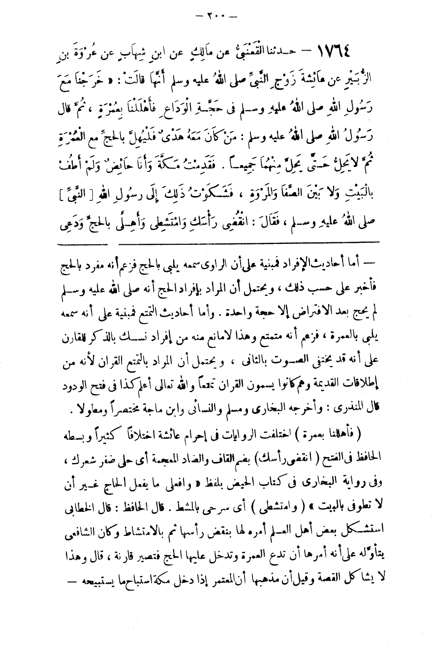 أَمَّا أَحَادِيثُ الْإِفْرَاد فَمَبْنِيَّة عَلَى أَنَّ الرَّاوِي سَمِعَهُ يُلَبِّي بِالْحَجِّ فَزَعَمَ أَنَّهُ مُفْرِد بِالْحَجِّ فَأَخْبَرَ عَلَى حَسَب ذَلِكَ ، وَيُحْتَمَل أَنَّ الْمُرَاد بِإِفْرَادِ الْحَجّ أَنَّهُ صَلَّى اللَّه عَلَيْهِ وَسَلَّمَ لَمْ يَحُجّ بَعْد الِافْتِرَاض إِلَّا حَجَّة وَاحِدَة . وَأَمَّا أَحَادِيث التَّمَتُّع فَمَبْنِيَّة عَلَى أَنَّهُ سَمِعَهُ يُلَبِّي بِالْعُمْرَةِ ، فَزَعَمَ أَنَّهُ مُتَمَتِّع وَهَذَا لَا مَانِع مِنْهُ مِنْ إِفْرَاد نُسُك بِالذِّكْر لِلْقَارِنِ عَلَى أَنَّهُ قَدْ يَخْتَفِي الصَّوْت بِالثَّانِي ، وَيُحْتَمَل أَنَّ الْمُرَاد بِالتَّمَتُّعِ الْقِرَان لِأَنَّهُ مِنْ إِطْلَاقَات الْقَدِيمَة وَهُمْ كَانُوا يُسَمُّونَ الْقِرَانَ تَمَتُّعًا وَاَللَّه تَعَالَى أَعْلَم كَذَا فِي فَتْح الْوَدُود قَالَ الْمُنْذِرِيّ : وَأَخْرَجَهُ الْبُخَارِيّ وَمُسْلِم وَالنَّسَائِيُّ وَابْن مَاجَهْ مُخْتَصَرًا وَمُطَوَّلًا .