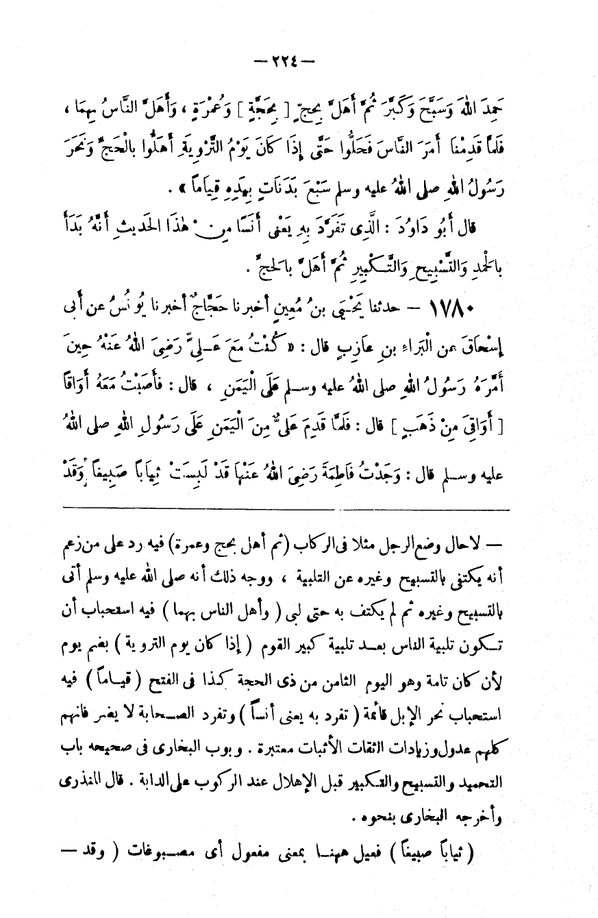 : فِيهِ رَدّ عَلَى مَنْ زَعَمَ أَنَّهُ يُكْتَفَى بِالتَّسْبِيحِ وَغَيْره عَنْ التَّلْبِيَة ، وَوَجْه ذَلِكَ أَنَّهُ صَلَّى اللَّه عَلَيْهِ وَسَلَّمَ أَتَى بِالتَّسْبِيحِ وَغَيْره ثُمَّ لَمْ يَكْتَفِ بِهِ حَتَّى لَبَّى