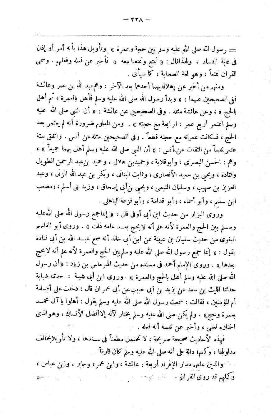 رسول الله صلى الله عليه و سلم بين حجة وعمرة وتأويل هذا بأنه أمر أو إذن في غاية الفساد ولهذا قال تمتع وتمتعنا معه فأخبر عن فعله وفعلهم