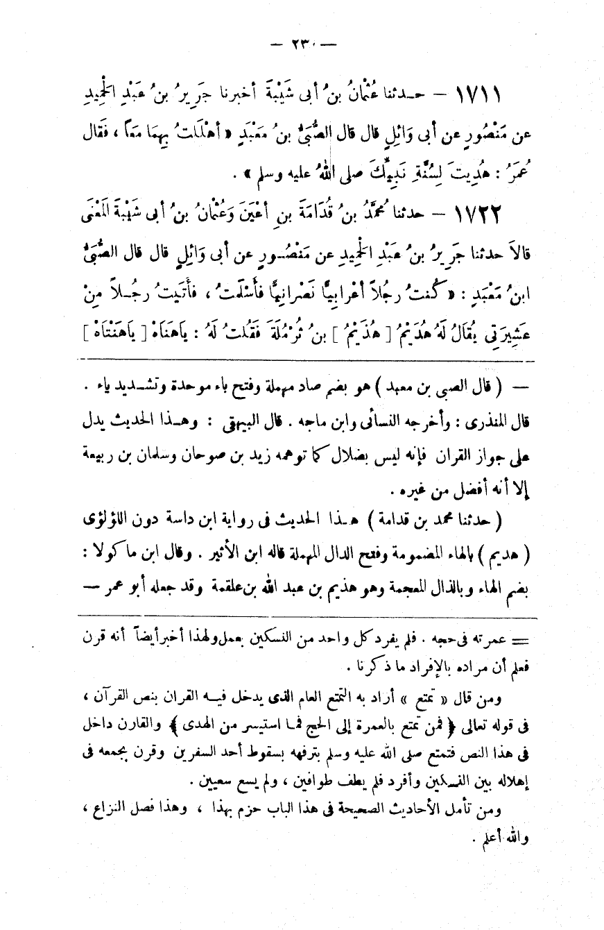 ومن قال تمتع أراد به التمتع العام الذي يدخل فيه القران بنص القرآن في قوله تعالى فمن تمتع بالعمرة إلى الحج فما استيسر من الهدي والقارن داخل في هذا النص فتمتع صلى الله عليه و سلم بترفهه بسقوط أحد السفرين وقرن بجمعه في إهلاله بين النسكين وأفرد فلم يطف طوافين ولم يسع سعيين