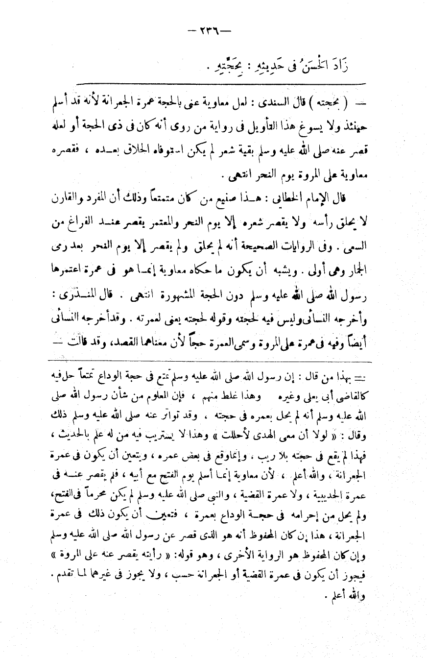 وهذا غلط منهم فإن المعلوم من شأن رسول الله صلى الله عليه و سلم أنه لم يحل بعمرة في حجته وقد تواتر عنه صلى الله عليه و سلم ذلك وقال لولا أن معي الهدي لأحللت وهذا لا يستريب فيه من له علم بالحديث فهذا لم يقع في حجته بلا ريب وإنما وقع في بعض عمره ويتعين أن يكون في عمرة الجعرانة والله أعلم لأن معاوية إنما أسلم يوم الفتح مع أبيه فلم يقصر عنه في عمرة الحديبية ولا عمرة القضية والنبي صلى الله عليه و سلم لم يكن محرما في الفتح ولم يحل من إحرامه في حجة الوداع بعمرة فتعين أن يكون ذلك في عمرة الجعرانة هذا إن كان المحفوظ أنه هو الذي قصر عن رسول الله صلى الله عليه و سلم وإن كان المحفوظ هو الرواية الأخرى وهو قوله رأيته يقصر عنه على المروة فيجوز أن يكون في عمرة القضية أو الجعرانة حسب ولا يجوز في غيرهما لما تقدم والله أعلم