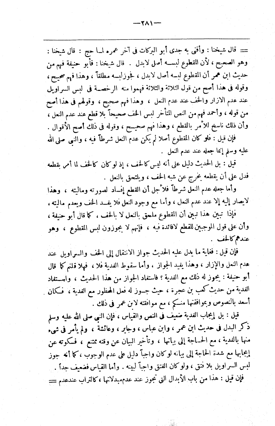 قيل بل الحديث دليل على أنه ليس كالخف إذ لو كان كالخف لما أمر بقطعه فدل على أن بقطعه يخرج من شبه الخف ويلتحق بالنعل