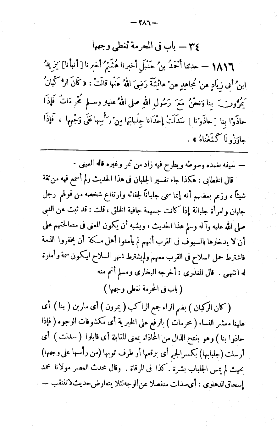 : بِحَيْثُ لَمْ يَمَسّ الْجِلْبَاب بَشَرَة . كَذَا فِي الْمِرْقَاة . وَقَالَ مُحَدِّث الْعَصْر مَوْلَانَا مُحَمَّد إِسْحَاق الدَّهْلَوِيّ : أَيْ سَدَلَتْ مُنْفَصِلًا عَنْ الْوَجْه لِئَلَّا يَتَعَارَض حَدِيث لَا تَنْتَقِب@