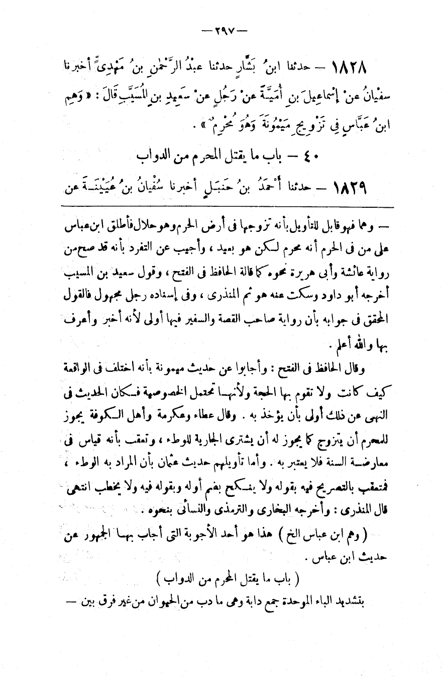 وَهْمًا فَهُوَ قَابِل لِلتَّأْوِيلِ بِأَنَّهُ تَزَوَّجَهَا فِي أَرْض الْحَرَم وَهُوَ حَلَال فَأَطْلَقَ اِبْن عَبَّاس عَلَى مَنْ فِي الْحَرَم أَنَّهُ مُحْرِم لَكِنْ هُوَ بَعِيد ، وَأُجِيبَ عَنْ التَّفَرُّد بِأَنَّهُ قَدْ صَحَّ مِنْ رِوَايَة عَائِشَة وَأَبِي هُرَيْرَة نَحْوه كَمَا قَالَهُ الْحَافِظ فِي الْفَتْح ، وَقَوْل سَعِيد بْن الْمُسَيِّب أَخْرَجَهُ أَبُو دَاوُدَ وَسَكَتَ عَنْهُ هُوَ ثُمَّ الْمُنْذِرِيُّ ، وَفِي إِسْنَاده رَجُل مَجْهُول فَالْقَوْل الْمُحَقَّق فِي جَوَابه بِأَنَّ رِوَايَة صَاحِب الْقِصَّة وَالسَّفِير فِيهَا أَوْلَى لِأَنَّهُ أَخْبَر وَأَعْرَف بِهَا وَاَللَّه أَعْلَم . وَقَالَ الْحَافِظ فِي الْفَتْح : وَأَجَابُوا عَنْ حَدِيث مَيْمُونَة بِأَنَّهُ اُخْتُلِفَ فِي الْوَاقِعَة كَيْف كَانَتْ وَلَا تَقُوم بِهَا الْحُجَّة وَلِأَنَّهَا تَحْتَمِل الْخُصُوصِيَّة فَكَانَ الْحَدِيث فِي النَّهْي عَنْ ذَلِكَ أَوْلَى بِأَنْ يُؤْخَذ بِهِ . وَقَالَ عَطَاء وَعِكْرِمَة وَأَهْل الْكُوفَة يَجُوز لِلْمُحْرِمِ أَنْ يَتَزَوَّج كَمَا يَجُوز لَهُ أَنْ يَشْتَرِي الْجَارِيَة لِلْوَطْءِ ، وَتُعُقِّبَ بِأَنَّهُ قِيَاس فِي مُعَارَضَة السُّنَّة فَلَا يُعْتَبَر بِهِ . وَأَمَّا تَأْوِيلهمْ حَدِيث عُثْمَان بِأَنَّ الْمُرَاد بِهِ الْوَطْء ، فَمُتَعَقَّب بِالتَّصْرِيحِ فِيهِ بِقَوْلِهِ وَلَا يُنْكِح بِضَمِّ أَوَّله وَبِقَوْلِهِ فِيهِ وَلَا يَخْطُب اِنْتَهَى .