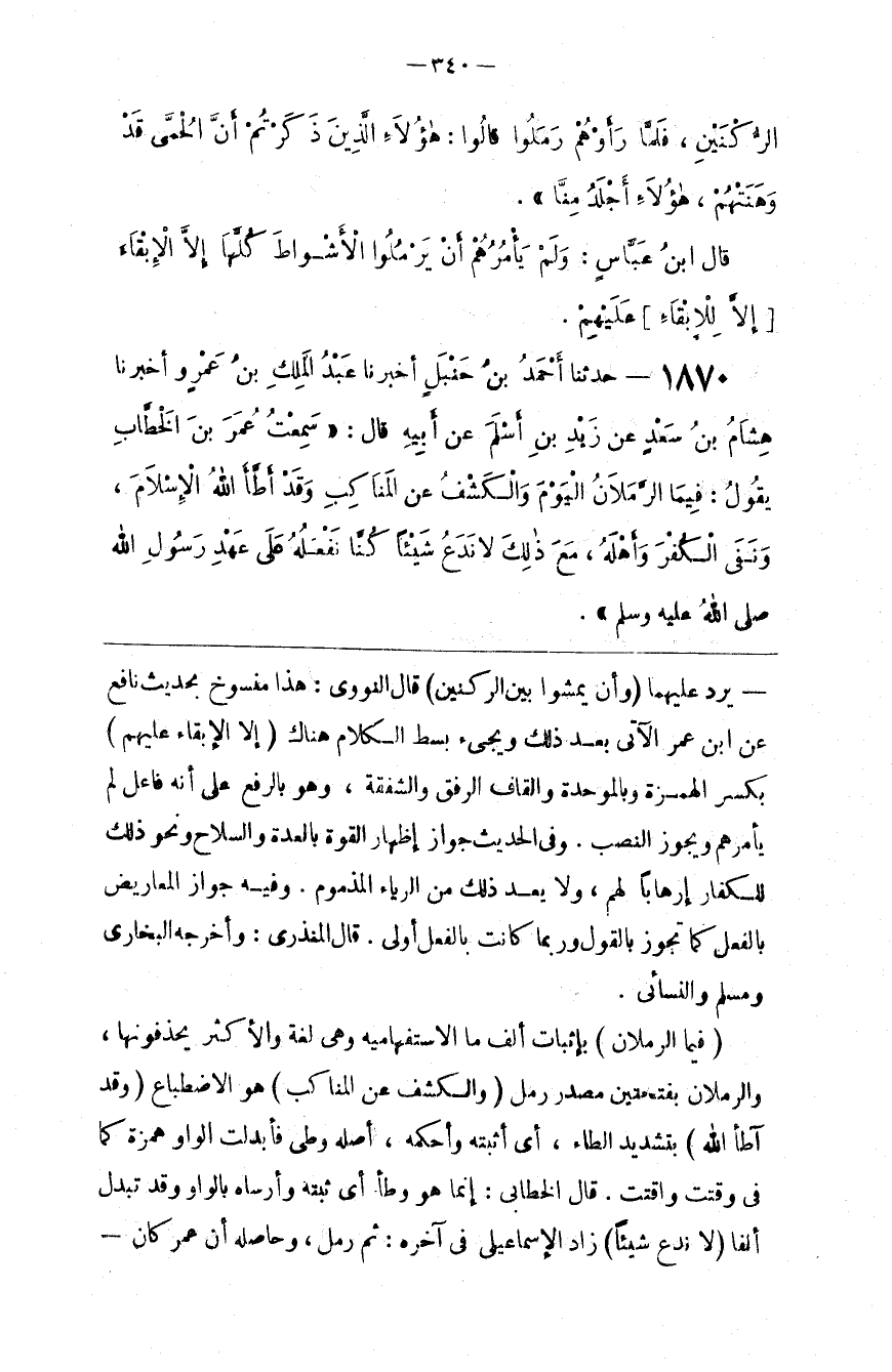 : قَالَ النَّوَوِيّ : هَذَا مَنْسُوخ بِحَدِيثِ نَافِع عَنْ اِبْن عُمَر الْآتِي بَعْد ذَلِكَ وَيَجِيء بَسْط الْكَلَام هُنَاكَ