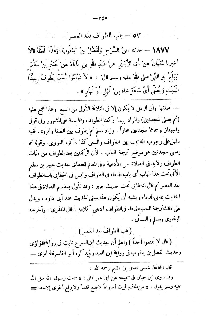 قال الحافظ شمس الدين بن القيم رحمه الله وقد روى ابن حبان في صحيحه عن ابن عمر قال سمعت رسول الله صلى الله عليه و سلم يقول من طاف بالبيت أسبوعا لا يضع قدما ولا يرفع أخرى إلا حط