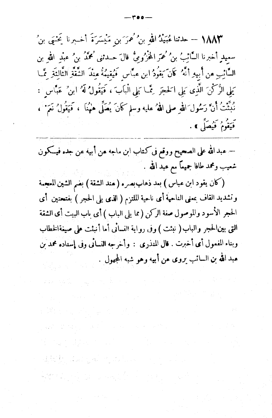عَبْد اللَّه عَلَى الصَّحِيح وَوَقَعَ فِي كِتَاب اِبْن مَاجَهْ عَنْ أَبِيهِ عَنْ جَدّه فَيَكُون شُعَيْب وَمُحَمَّد طَافَا جَمِيعًا مَعَ عَبْد اللَّه .