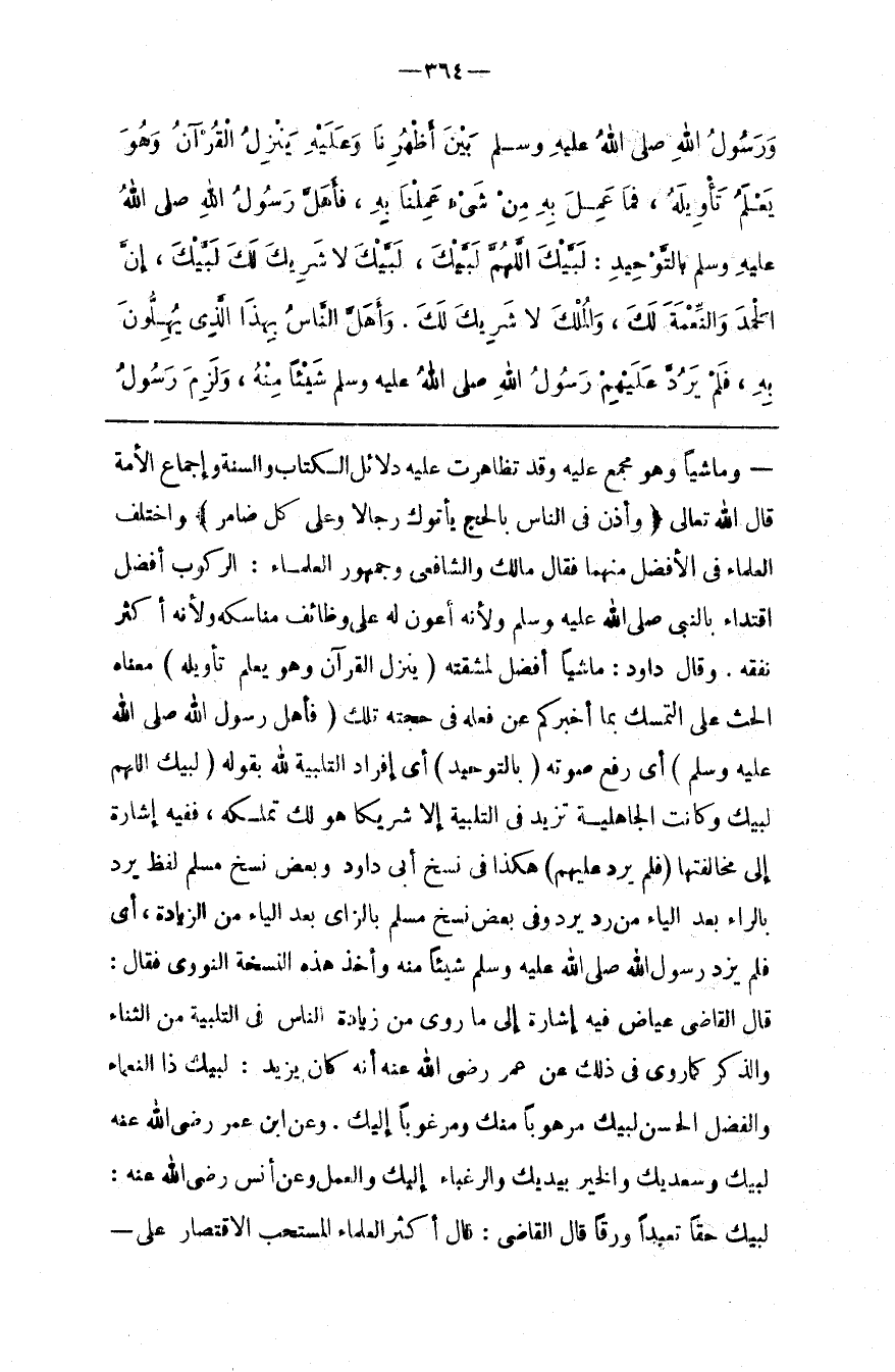 وَمَاشِيًا وَهُوَ مُجْمَع عَلَيْهِ وَقَدْ تَظَاهَرَتْ عَلَيْهِ دَلَائِل الْكِتَاب وَالسُّنَّة وَإِجْمَاع الْأُمَّة قَالَ اللَّه تَعَالَى : { وَأَذِّنْ فِي النَّاس بِالْحَجِّ يَأْتُوك رِجَالًا وَعَلَى كُلّ ضَامِرٍ } وَاخْتَلَفَ الْعُلَمَاء فِي الْأَفْضَل مِنْهُمَا فَقَالَ مَالِك وَالشَّافِعِيّ وَجُمْهُور الْعُلَمَاء : الرُّكُوب أَفْضَل اِقْتِدَاء بِالنَّبِيِّ صَلَّى اللَّه عَلَيْهِ وَسَلَّمَ وَلِأَنَّهُ أَعْوَن لَهُ عَلَى وَظَائِف مَنَاسِكه وَلِأَنَّهُ أَكْثَر نَفَقَة . وَقَالَ دَاوُدُ : مَاشِيًا أَفْضَل لِمَشَقَّتِهِ