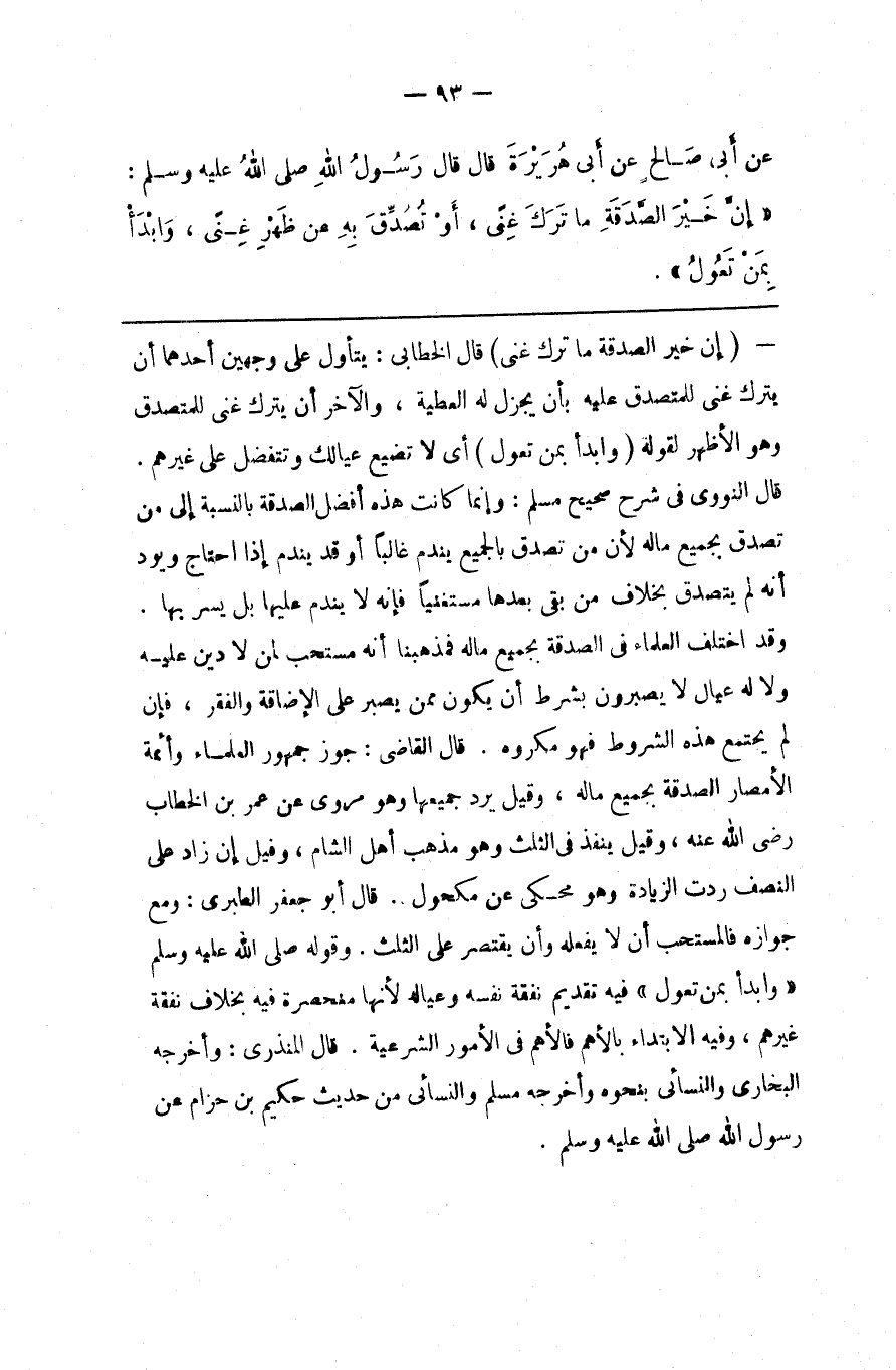 ( إِنَّ خَيْر الصَّدَقَة مَا تَرَكَ غِنًى )