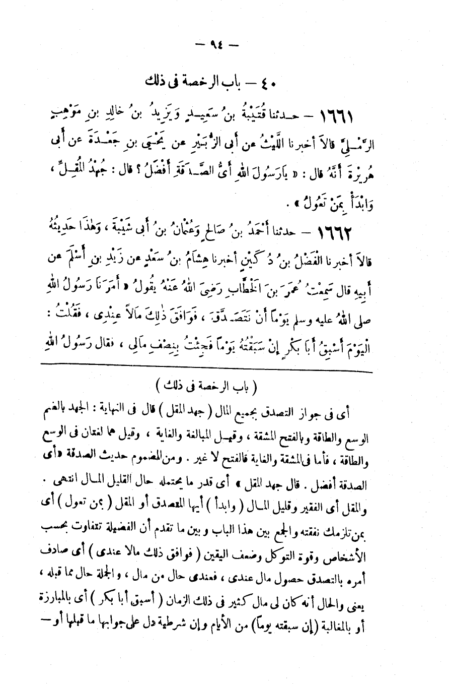 أَيْ فِي جَوَاز التَّصَدُّق بِجَمِيعِ الْمَال .