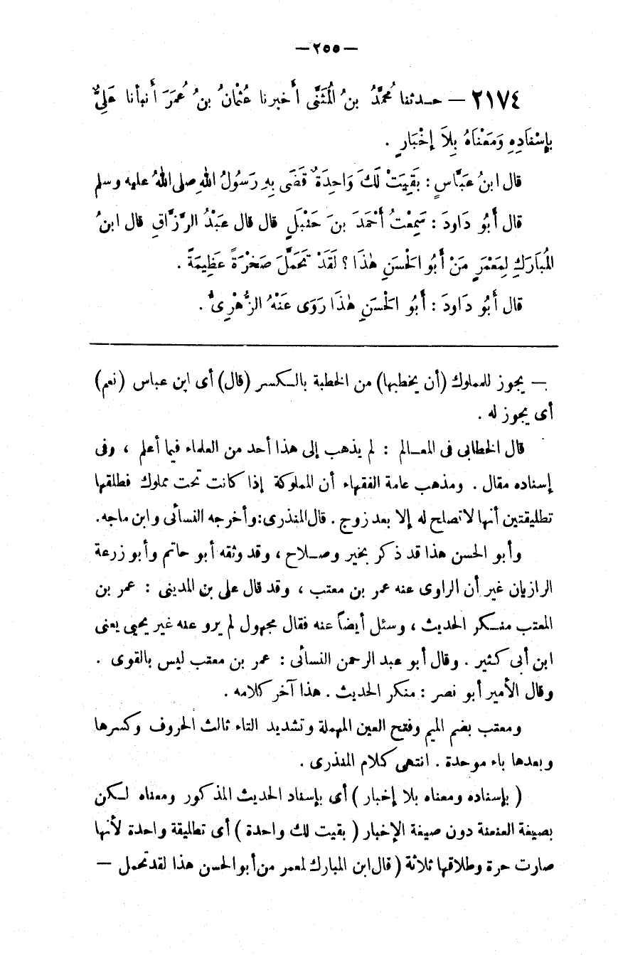 قَالَ الْخَطَّابِيُّ فِي الْمَعَالِم : لَمْ يَذْهَب إِلَى هَذَا أَحَد مِنْ الْعُلَمَاء فِيمَا أَعْلَم ، وَفِي إِسْنَاده مَقَال . وَمَذْهَب عَامَّة الْفُقَهَاء أَنَّ الْمَمْلُوكَة إِذَا كَانَتْ تَحْت مَمْلُوك فَطَلَّقَهَا تَطْلِيقَتَيْنِ أَنَّهَا لَا تَصْلُح لَهُ إِلَّا بَعْد زَوْج .