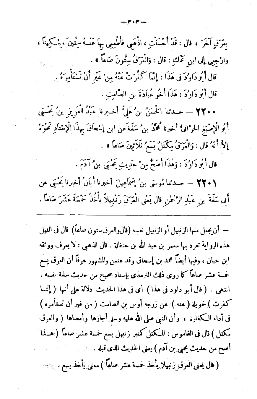 : قَالَ فِي النَّيْل هَذِهِ الرِّوَايَة تَفَرَّدَ بِهَا مَعْمَر بْن عَبْد اللَّه بْن حَنْظَلَة . قَالَ الذَّهَبِيّ : لَا يُعْرَف وَوَثَّقَهُ اِبْن حِبَّان ، وَفِيهَا أَيْضًا مُحَمَّد بْن إِسْحَاق وَقَدْ عَنْعَنَ وَالْمَشْهُور عُرْفًا أَنَّ الْعَرَق يَسَع خَمْسَة عَشَر صَاعًا كَمَا رَوَى ذَلِكَ التِّرْمِذِيّ بِإِسْنَادٍ صَحِيح مِنْ حَدِيث سَلَمَة نَفْسه . اِنْتَهَى .