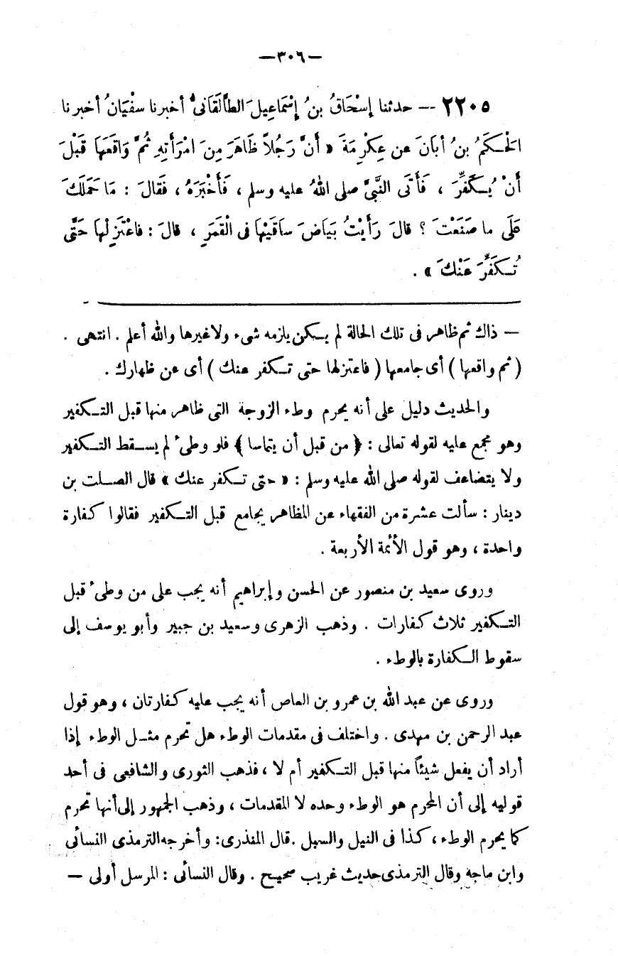 وَالْحَدِيث دَلِيل عَلَى أَنَّهُ يَحْرُم وَطْء الزَّوْجَة الَّتِي ظَاهَرَ مِنْهَا قَبْل التَّكْفِير وَهُوَ مُجْمَع عَلَيْهِ لِقَوْلِهِ تَعَالَى : { مِنْ قَبْل أَنْ يَتَمَاسَّا } فَلَوْ وَطِئَ لَمْ يَسْقُط التَّكْفِير وَلَا يَتَضَاعَف لِقَوْلِهِ صَلَّى اللَّه عَلَيْهِ وَسَلَّمَ : " حَتَّى تُكَفِّر عَنْك " قَالَ الصَّلْت بْن دِينَار : سَأَلْت عَشَرَة مِنْ الْفُقَهَاء عَنْ الْمُظَاهِر يُجَامِع قَبْل التَّكْفِير فَقَالُوا كَفَّارة وَاحِدَة ، وَهُوَ قَوْل الْأَئِمَّة الْأَرْبَعَة .