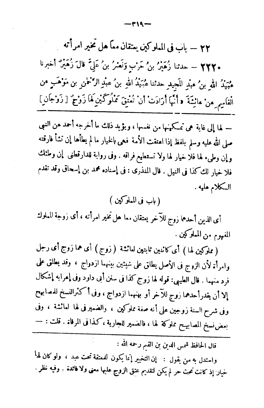 أَيْ الَّذِينَ أَحَدهمَا زَوْج لِلْآخَرِ يَعْتِقَانِ مَعًا هَلْ تُخَيَّر اِمْرَأَته ، أَيْ زَوْجَة الْمَمْلُوك الْمَفْهُوم مِنْ الْمَمْلُوكَيْنِ .