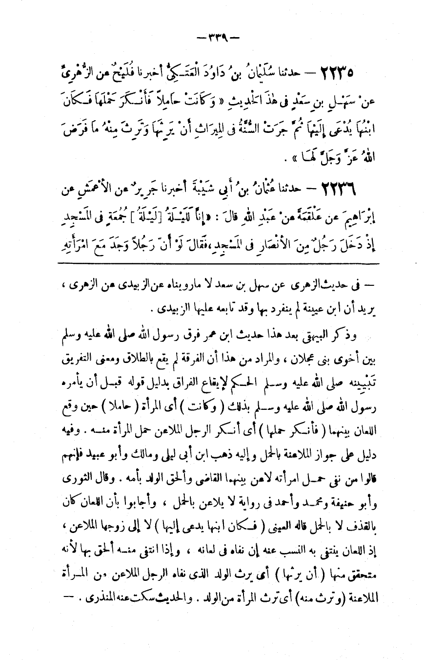 وَذَكَرَ الْبَيْهَقِيُّ بَعْد هَذَا حَدِيث اِبْن عُمَر فَرَّقَ رَسُول اللَّه صَلَّى اللَّه عَلَيْهِ وَسَلَّمَ بَيْن أَخَوَيْ بَنِي عَجْلَان ، وَالْمُرَاد مِنْ هَذَا أَنَّ الْفُرْقَة لَمْ يَقَع بِالطَّلَاقِ وَمَعْنَى التَّفْرِيق تَبْيِينه صَلَّى اللَّه عَلَيْهِ وَسَلَّمَ الْحُكْم لِإِيقَاعِ الْفِرَاق بِدَلِيلِ قَوْله قَبْل أَنْ يَأْمُرهُ رَسُول اللَّه صَلَّى اللَّه عَلَيْهِ وَسَلَّمَ بِذَلِكَ .