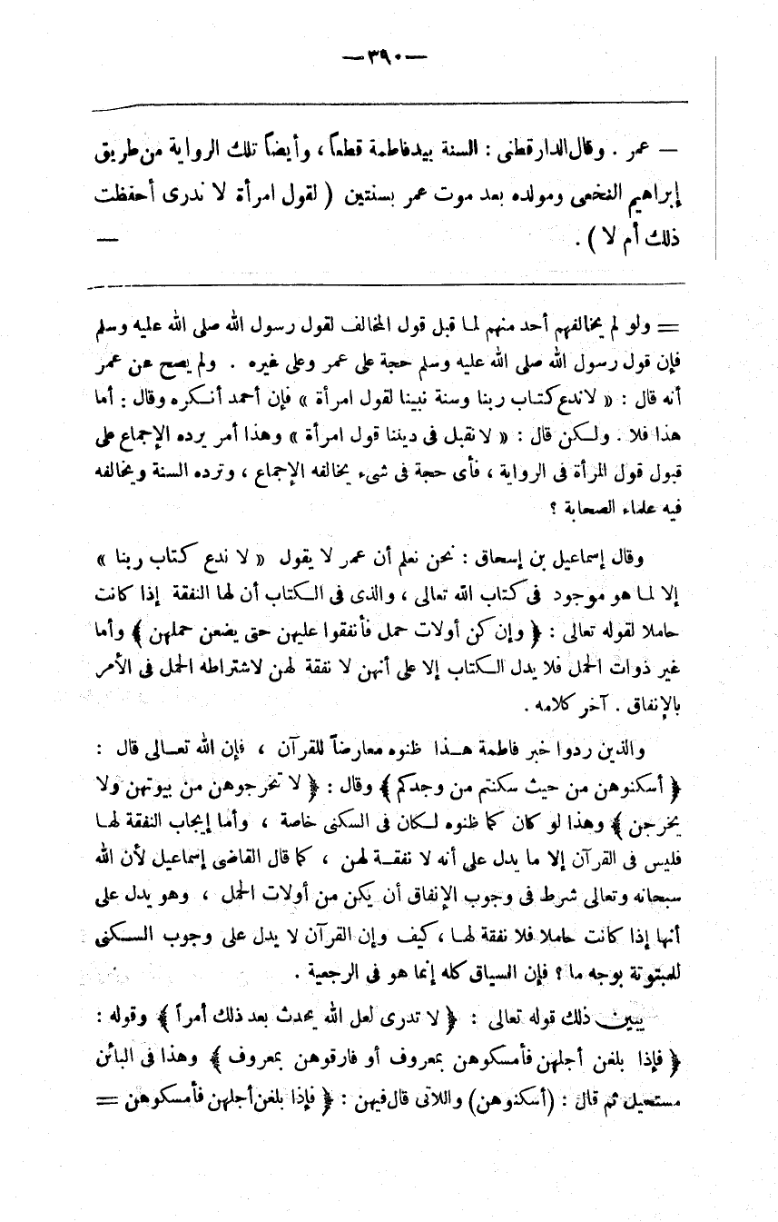 عُمَر . وَقَالَ الدَّارَقُطْنِيُّ : السُّنَّة بِيَدِ فَاطِمَة قَطْعًا ، وَأَيْضًا تِلْكَ الرِّوَايَة مِنْ طَرِيق إِبْرَاهِيم النَّخَعِيِّ وَمَوْلِده بَعْد مَوْت عُمَر بِسَنَتَيْنِ