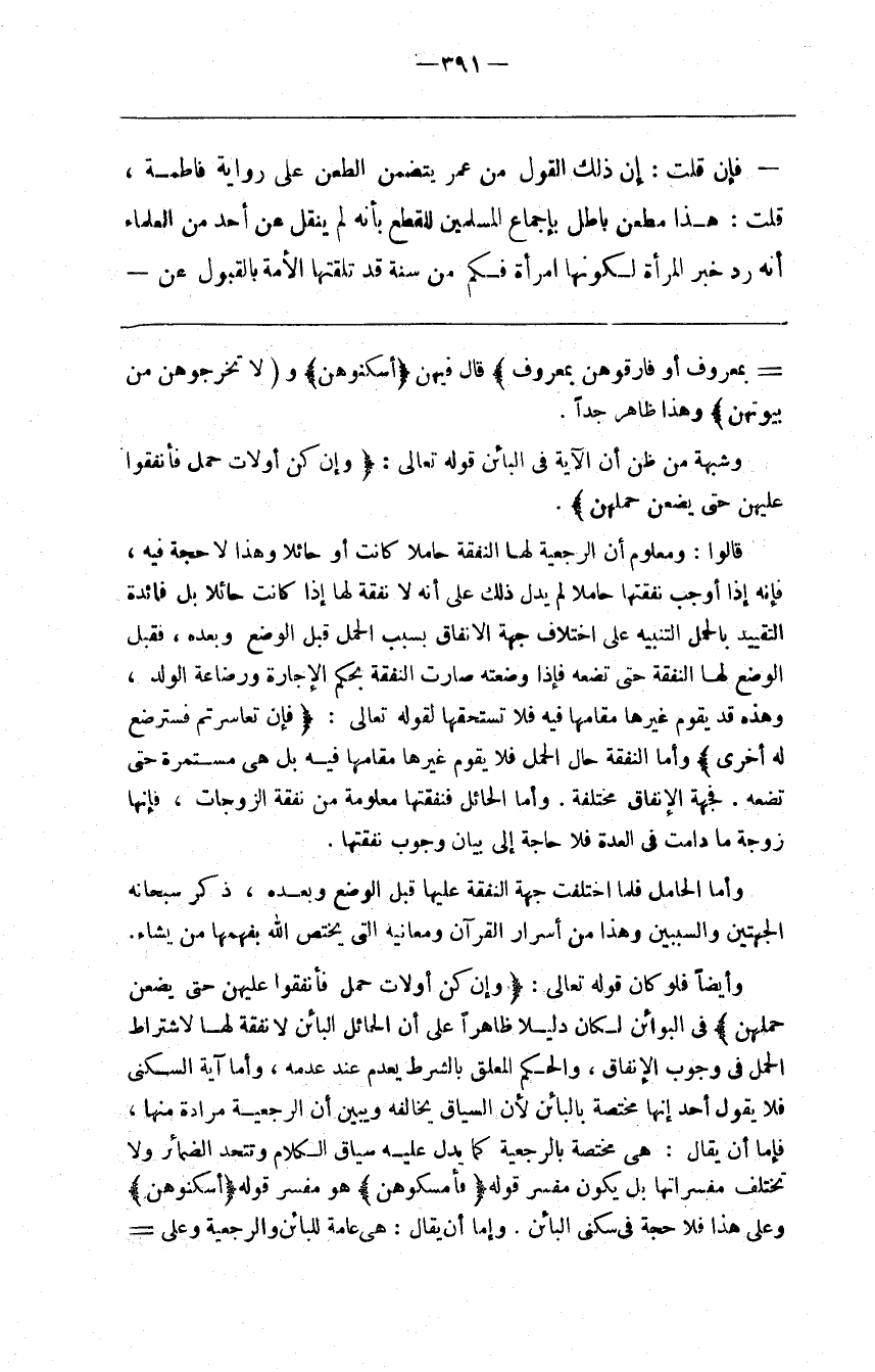 . فَإِنْ قُلْت : إِنَّ ذَلِكَ الْقَوْل مِنْ عُمَر يَتَضَمَّن الطَّعْن عَلَى رِوَايَة فَاطِمَة ، قُلْت : هَذَا مَطْعَن بَاطِل بِإِجْمَاعِ الْمُسْلِمِينَ لِلْقَطْعِ بِأَنَّهُ لَمْ يُنْقَل عَنْ أَحَد مِنْ الْعُلَمَاء أَنَّهُ رَدَّ خَبَر الْمَرْأَة لِكَوْنِهَا اِمْرَأَة فَكَمْ مِنْ سُنَّة قَدْ تَلَقَّتْهَا الْأُمَّة بِالْقَبُولِ عَنْ@