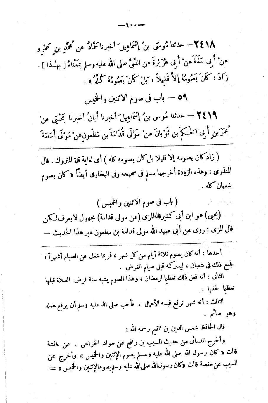 عن عائشة قالت كان رسول الله صلى الله عليه و سلم يصوم الاثنين والخميس وأخرج عن المسيب عن حفصة قالت كان رسول الله صلى الله عليه و سلم يصوم الاثنين والخميس