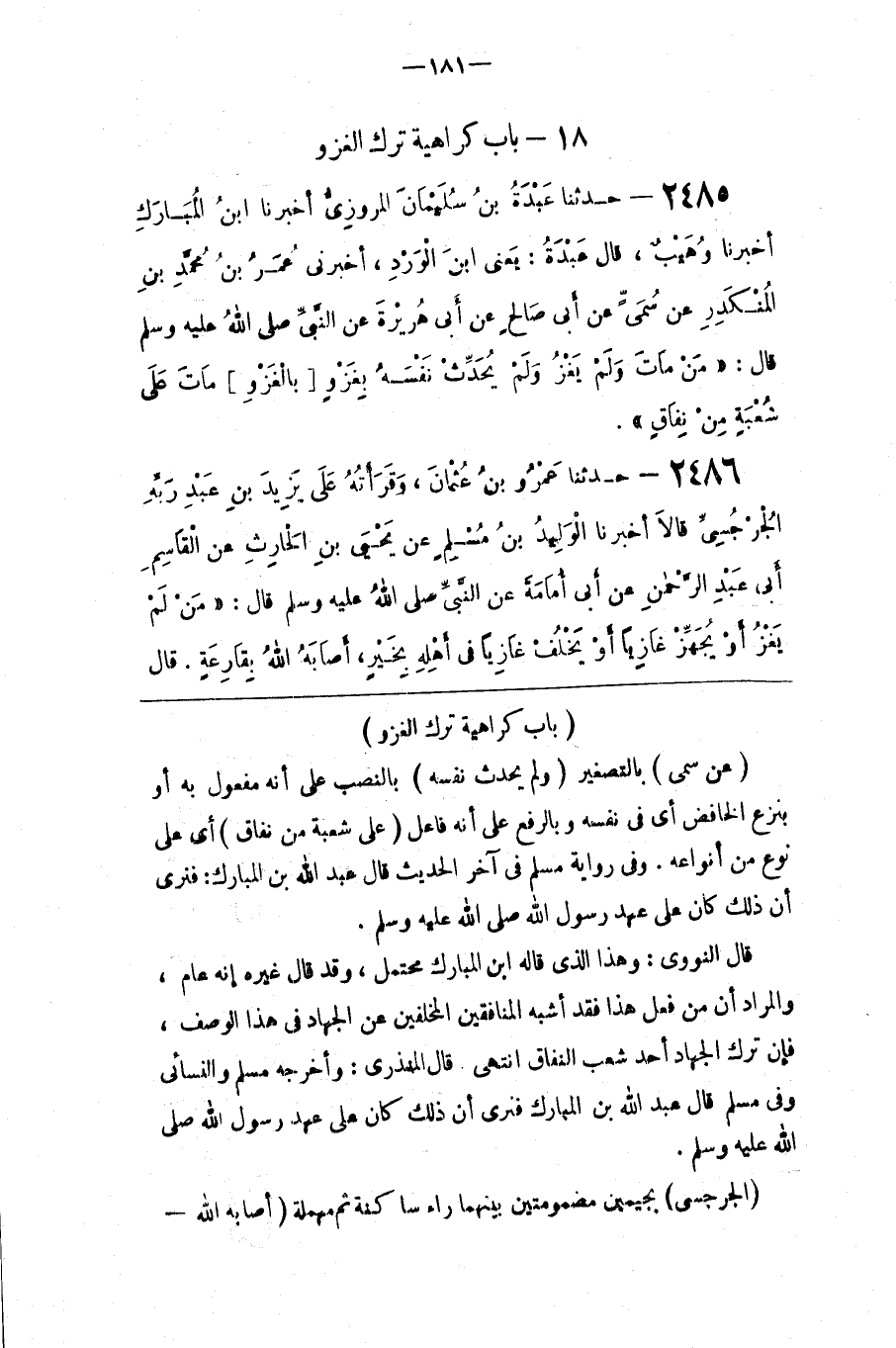 قَالَ النَّوَوِيّ : وَهَذَا الَّذِي قَالَهُ اِبْن الْمُبَارَك مُحْتَمَل ، وَقَدْ قَالَ غَيْره إِنَّهُ عَامّ ، وَالْمُرَاد أَنَّ مَنْ فَعَلَ هَذَا فَقَدْ أَشْبَهَ الْمُنَافِقِينَ الْمُخَلَّفِينَ عَنْ الْجِهَاد فِي هَذَا الْوَصْف ، فَإِنَّ تَرْك الْجِهَاد أَحَدُ شُعَب النِّفَاق اِنْتَهَى .