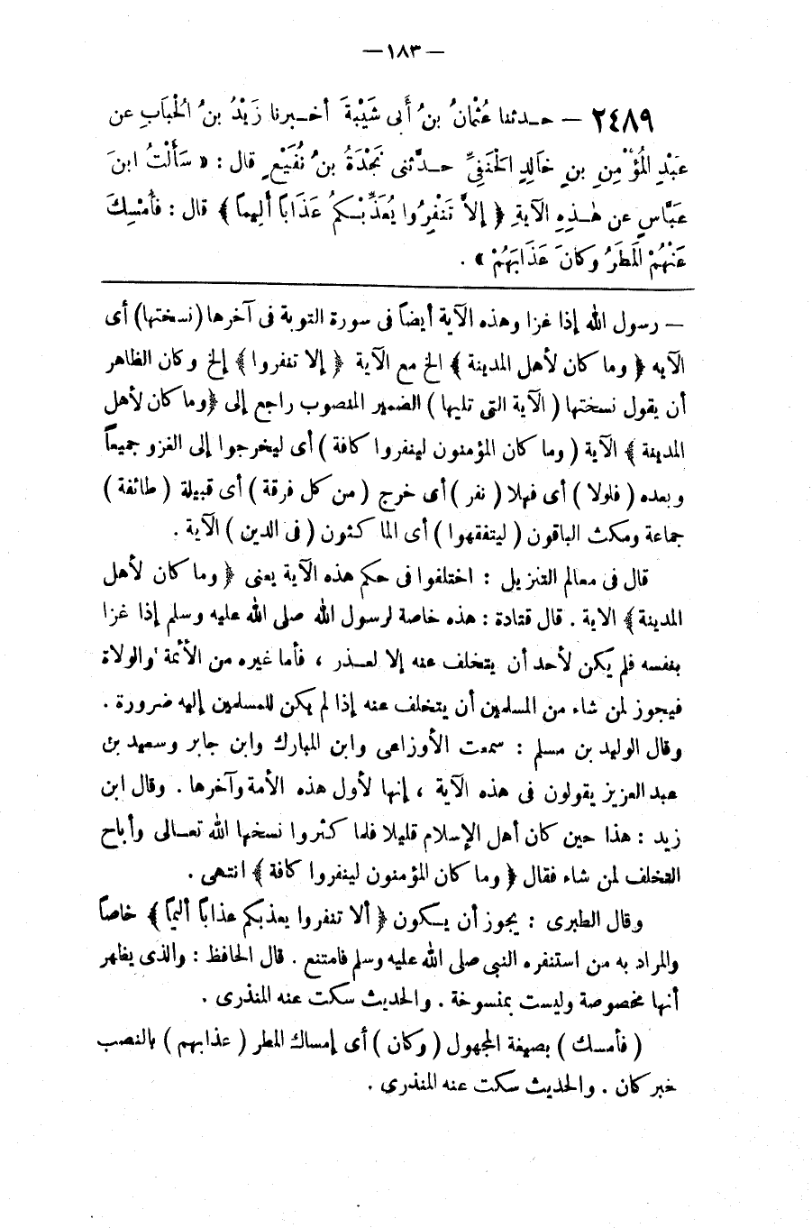 وَقَالَ الطَّبَرِيُّ : يَجُوز أَنْ يَكُون { إِلَّا تَنْفِرُوا يُعَذِّبكُمْ عَذَابًا أَلِيمًا }