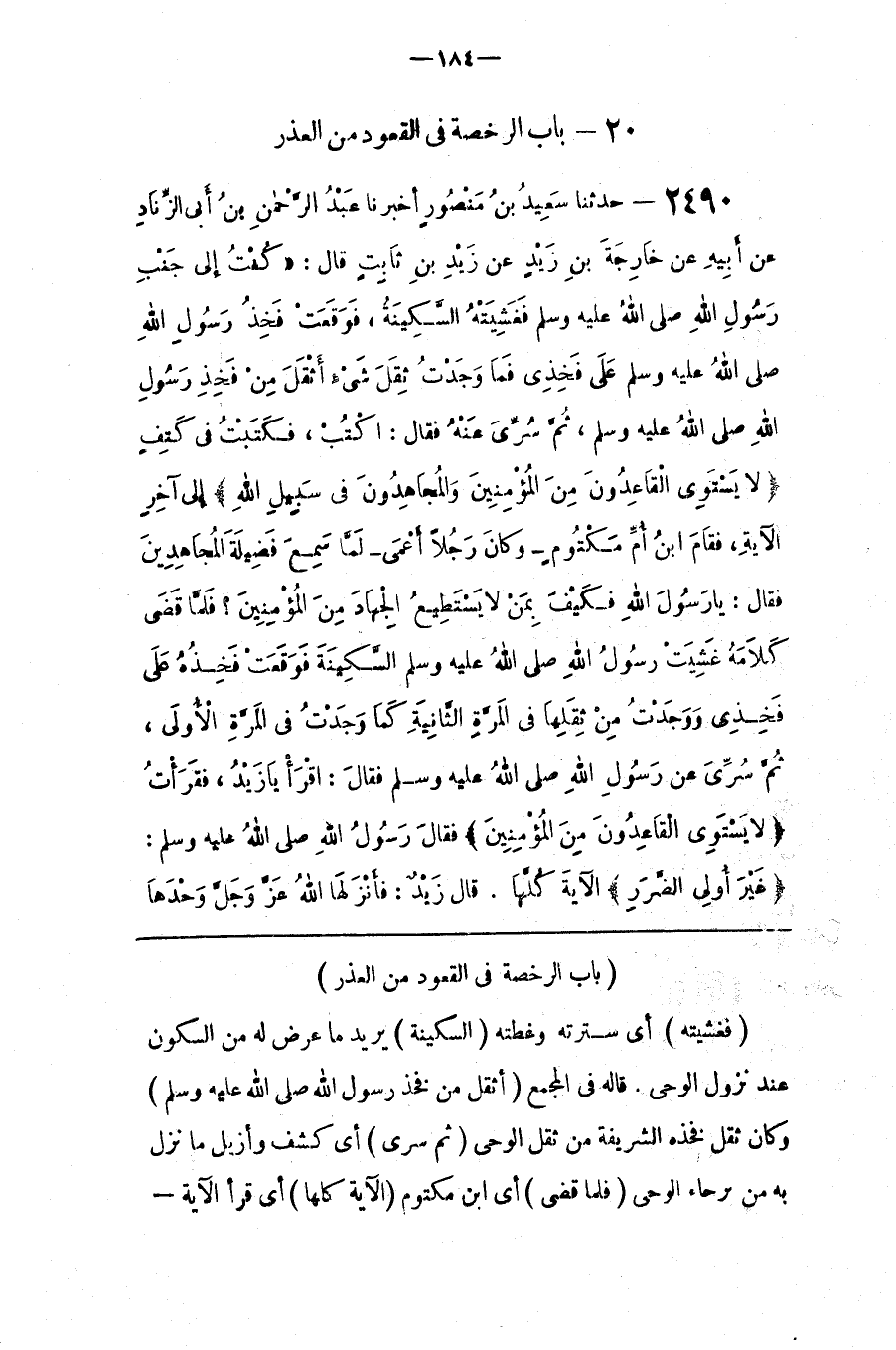: وَكَانَ ثِقَل فَخِذه الشَّرِيفَة مِنْ ثِقَل الْوَحْي