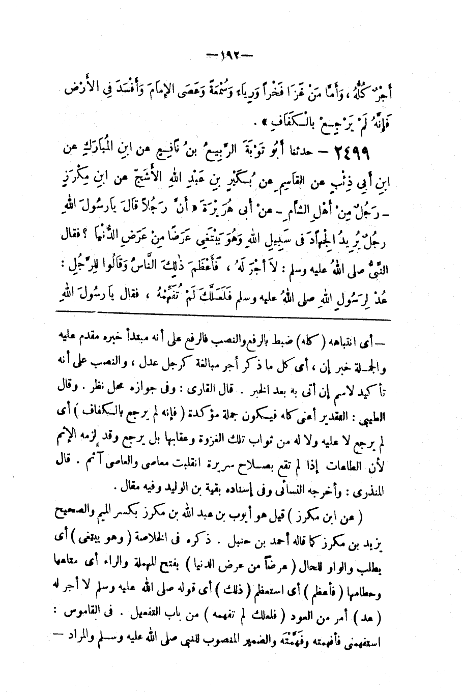 : ضُبِطَ بِالرَّفْعِ وَالنَّصْب فَالرَّفْع عَلَى أَنَّهُ مُبْتَدَأ خَبَره مُقَدَّم عَلَيْهِ وَالْجُمْلَة خَبَر إِنَّ ، أَيْ كُلّ مَا ذُكِرَ أَجْر مُبَالَغَة كَرَجُلٍ عَدْل ، وَالنَّصْب عَلَى أَنَّهُ تَأْكِيد لِاسْمِ إِنَّ أُتِيَ بِهِ بَعْد الْخَبَر . قَالَ الْقَارِي : وَفِي جَوَازه مَحَلّ نَظَر . وَقَالَ الطِّيبِيُّ : التَّقْدِير أَعْنِي كُلّه فَيَكُون جُمْلَة مُؤَكَّدَة