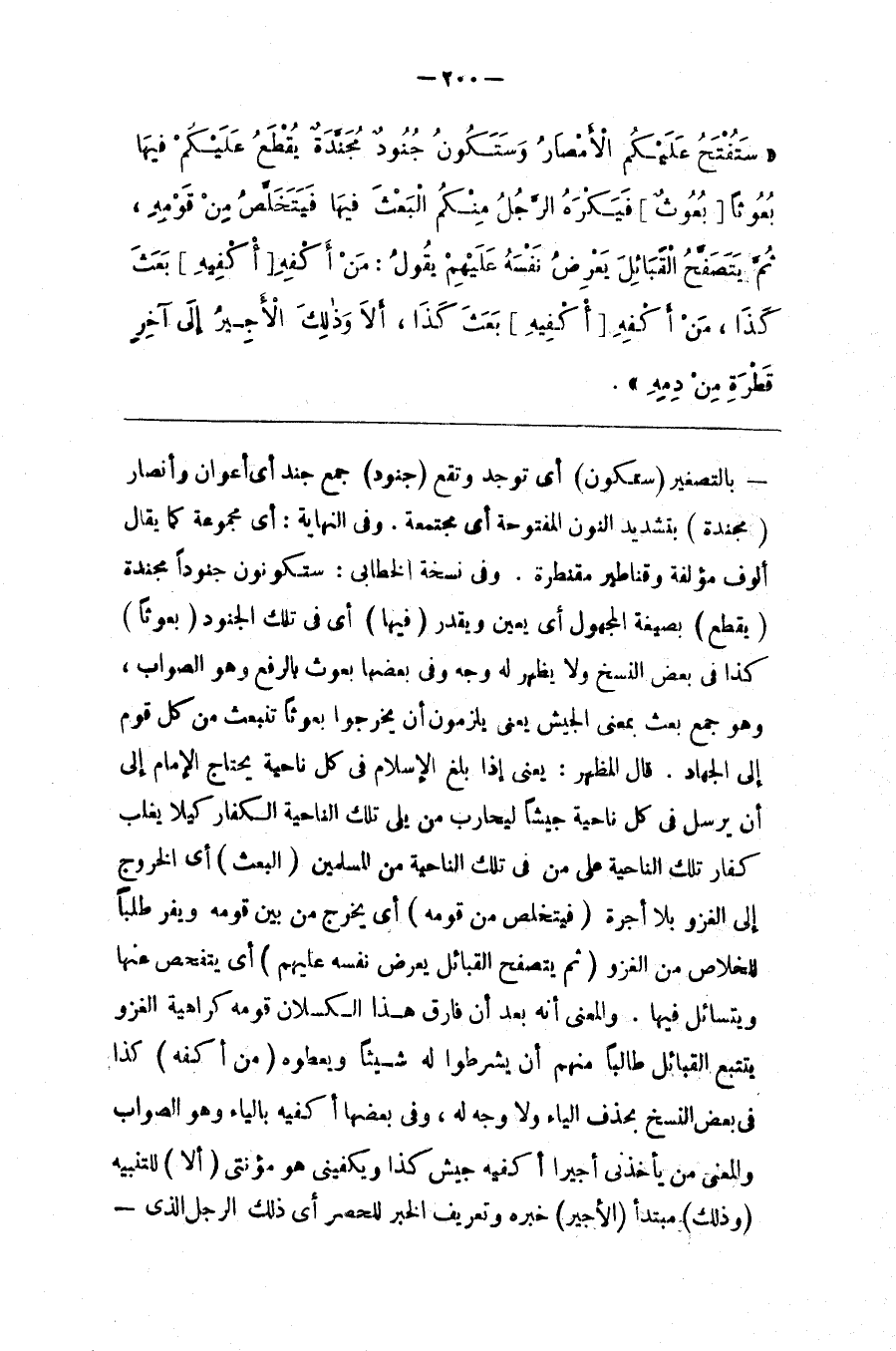 : كَذَا فِي بَعْض النُّسَخ وَلَا يَظْهَر لَهُ وَجْه وَفِي بَعْضهَا بُعُوث بِالرَّفْعِ وَهُوَ الصَّوَاب ، وَهُوَ جَمْع بَعْث بِمَعْنَى الْجَيْش يَعْنِي يَلْزَمُونَ أَنْ يُخْرِجُوا بُعُوثًا تَنْبَعِث مِنْ كُلّ قَوْم إِلَى الْجِهَاد . قَالَ المظهر : يَعْنِي إِذَا بَلَغَ الْإِسْلَام فِي كُلّ نَاحِيَة يَحْتَاج الْإِمَام إِلَى أَنْ يُرْسِل فِي كُلّ نَاحِيَة جَيْشًا لِيُحَارِب مَنْ يَلِي تِلْكَ النَّاحِيَة الْكُفَّار كَيْلَا يَغْلِب كُفَّار تِلْكَ النَّاحِيَة عَلَى مَنْ فِي تِلْكَ النَّاحِيَة مِنْ الْمُسْلِمِينَ
