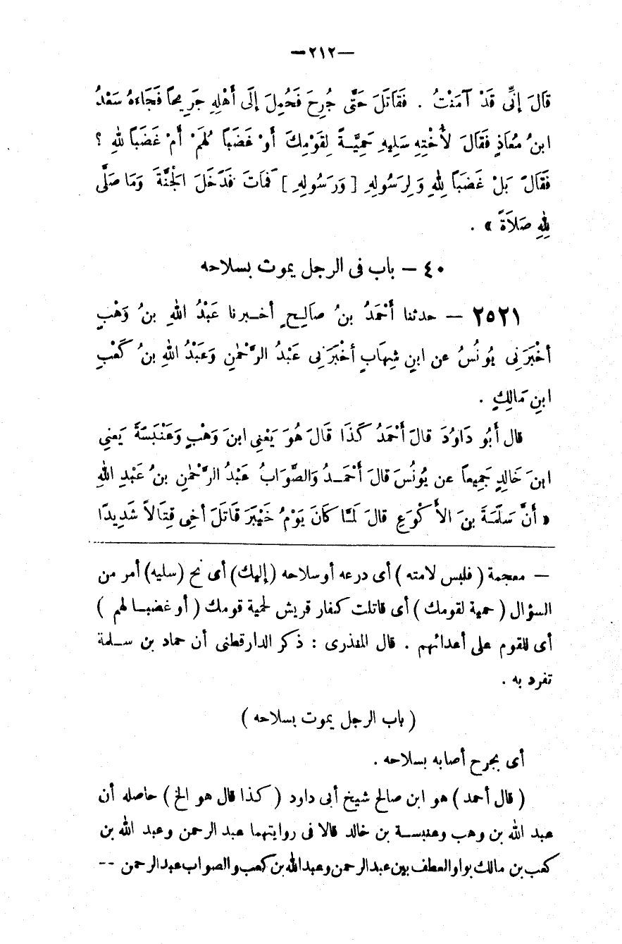 أَيْ بِجُرْحٍ أَصَابَهُ بِسِلَاحِهِ .