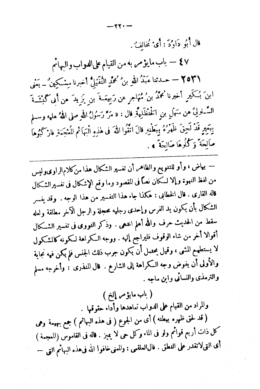 وَالْمُرَاد مِنْ الْقِيَام عَلَى الدَّوَابّ تَعَاهُدهَا وَأَدَاء حُقُوقهَا .