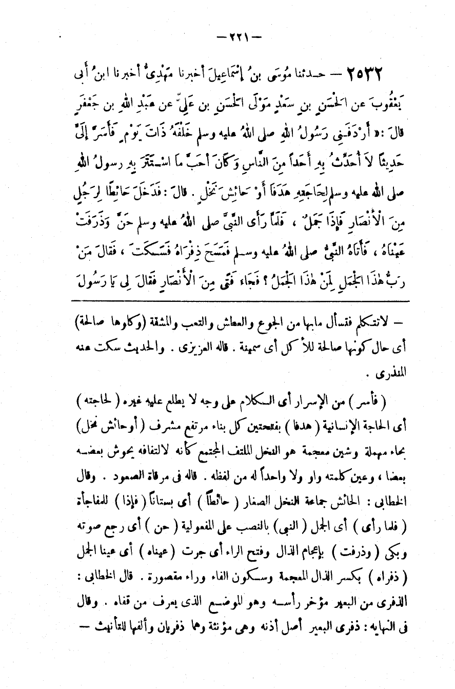 لَا تَتَكَلَّم فَتَسْأَل مَا بِهَا مِنْ الْجُوع وَالْعَطَش وَالتَّعَب وَالْمَشَقَّة
