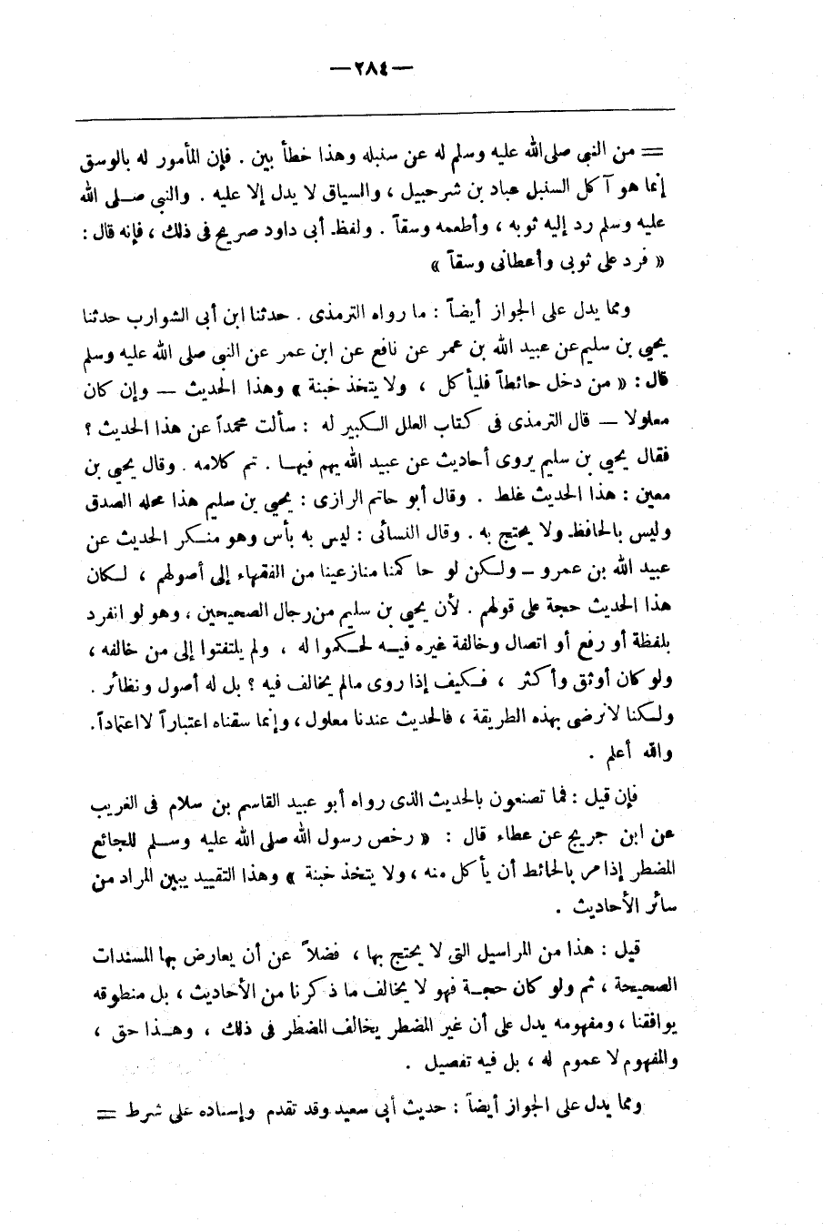 حدثنا ابن أبي الشوارب حدثنا يحيى بن سليم عن عبيد الله بن عمر عن النبي قال من دخل حائطا فليأكل ولا يتخذ خبنة وهذا الحديث وإن كان معلولا قال الترمذي في كتاب العلل الكبير له سألت محمدا عن هذا الحديث فقال يحيى بن سليم يروي أحاديث عن عبيد الله يهم فيها
