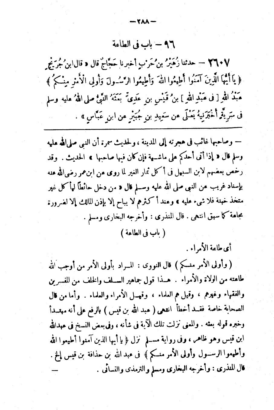 : قَالَ النَّوَوِيّ : الْمُرَاد بِأُولِي الْأَمْر مَنْ أَوْجَبَ اللَّه طَاعَته مِنْ الْوُلَاة وَالْأُمَرَاء . هَذَا قَوْل جَمَاهِير السَّلَف وَالْخَلَف مِنْ الْمُفَسِّرِينَ وَالْفُقَهَاء وَغَيْرهمْ ، وَقِيلَ هُمْ الْعُلَمَاء ، وَقِيلَ الْأُمَرَاء وَالْعُلَمَاء . وَأَمَّا مَنْ قَالَ الصَّحَابَة خَاصَّة فَقَدْ أَخْطَأَ اِنْتَهَى