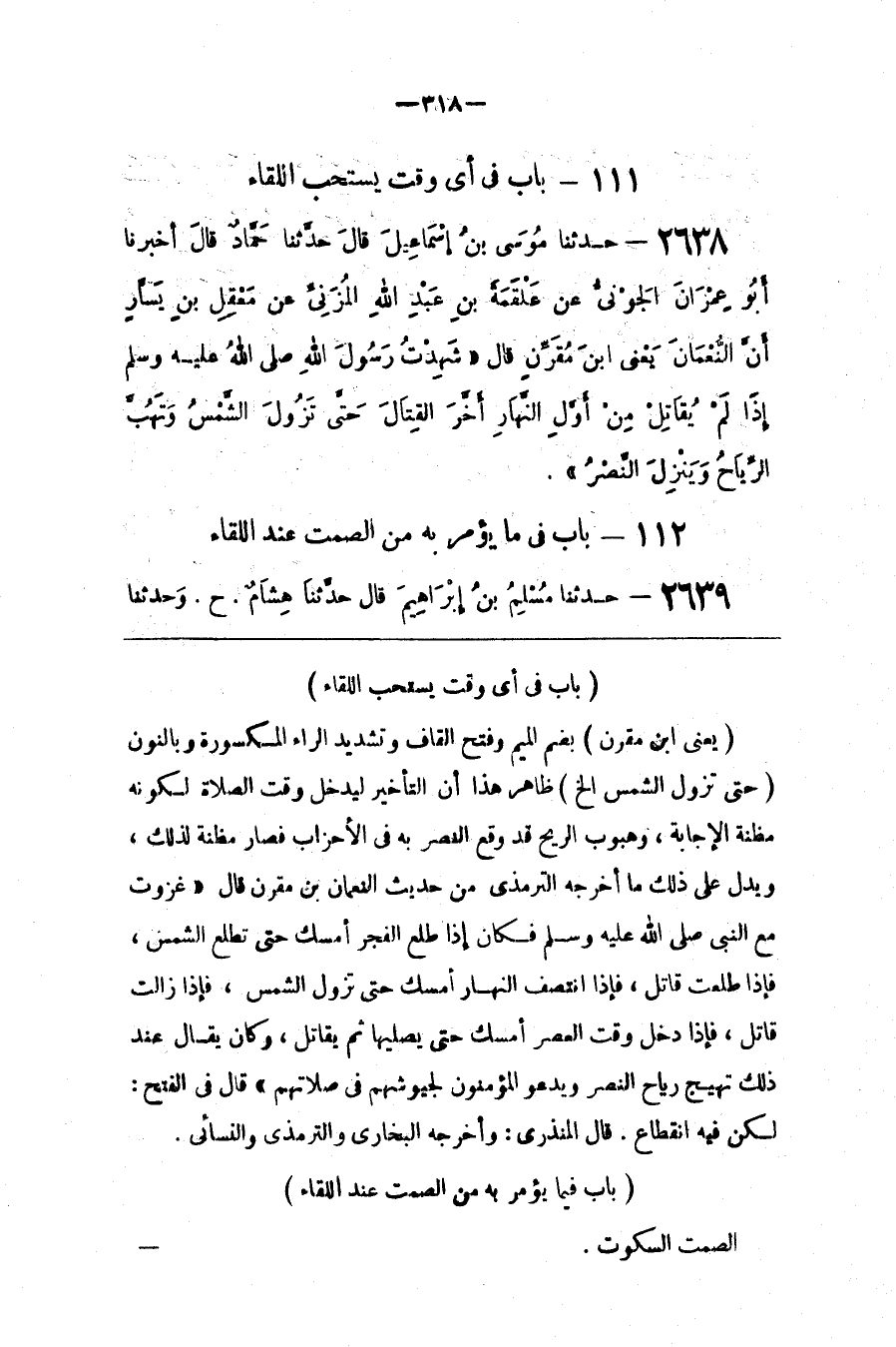 : ظَاهِر هَذَا أَنَّ التَّأْخِير لِيَدْخُل وَقْت الصَّلَاة لِكَوْنِهِ مَظِنَّة الْإِجَابَة ، وَهُبُوب الرِّيح قَدْ وَقَعَ النَّصْر بِهِ فِي الْأَحْزَاب فَصَارَ مَظِنَّة لِذَلِكَ ، وَيَدُلّ عَلَى ذَلِكَ مَا أَخْرَجَهُ التِّرْمِذِيّ مِنْ حَدِيث النُّعْمَان بْن مُقَرِّن قَالَ " غَزَوْت مَعَ النَّبِيّ صَلَّى اللَّه عَلَيْهِ وَسَلَّمَ فَكَانَ إِذَا طَلَعَ الْفَجْر أَمْسَكَ حَتَّى تَطْلُع الشَّمْس ، فَإِذَا طَلَعَتْ قَاتَلَ ، فَإِذَا اِنْتَصَفَ النَّهَار أَمْسَكَ حَتَّى تَزُول الشَّمْس ، فَإِذَا زَالَتْ قَاتَلَ ، فَإِذَا دَخَلَ وَقْت الْعَصْر أَمْسَكَ حَتَّى يُصَلِّيهَا ثُمَّ يُقَاتِل ، وَكَانَ يُقَال عِنْد ذَلِكَ تَهِيج رِيَاح النَّصْر وَيَدْعُو الْمُؤْمِنُونَ لِجُيُوشِهِمْ فِي صَلَاتهمْ " قَالَ فِي الْفَتْح : لَكِنْ فِيهِ اِنْقِطَاع .